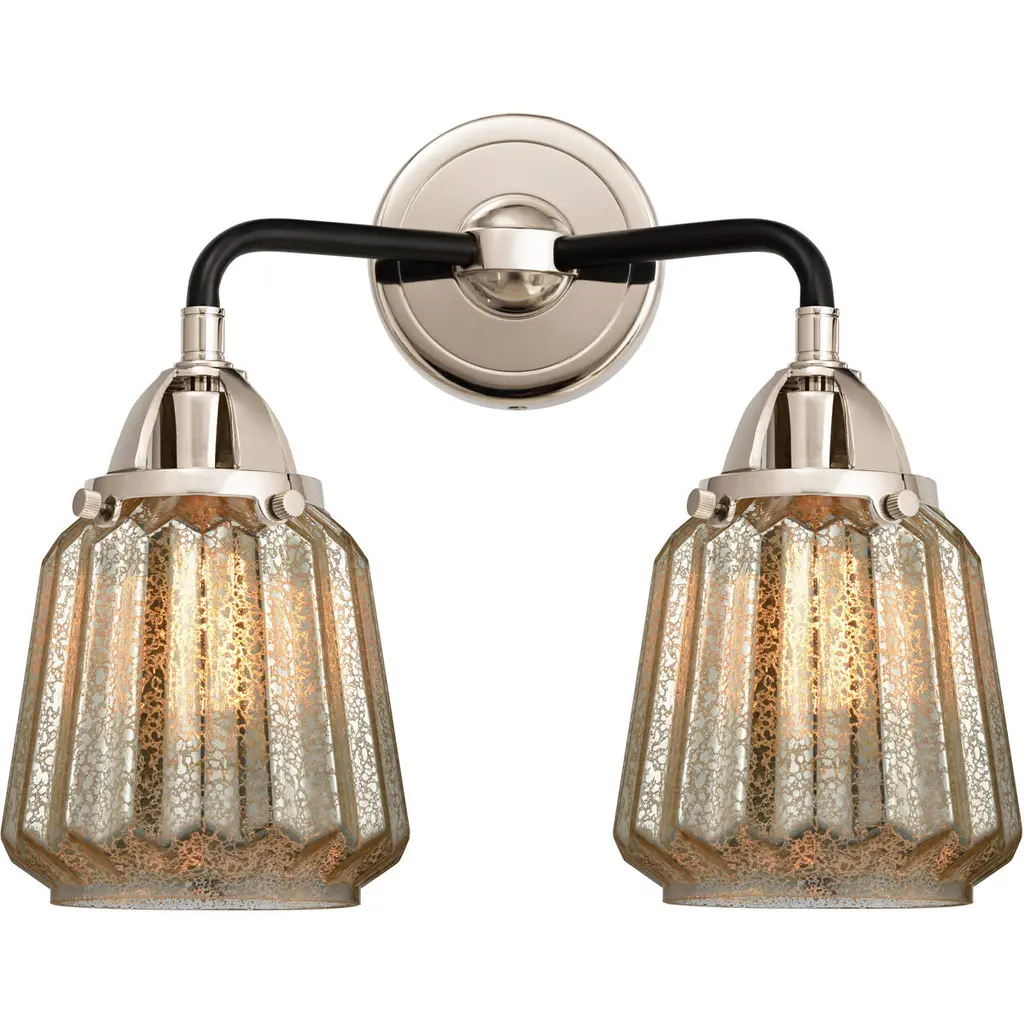 INNOVATIONS LIGHTING 447-2W-BK-G146-LED Caden 2 Light 17 inch Bath Vanity Light. Innovations Lighting Caden 2 Light 17 inch Matte Black Bath Vanity Light. Metal Finish (Body): Matte Black. Metal Finish (Canopy/Backplate): Matte Black. Glass or Metal Shade Color: Seedy. Material: Steel, Glass. Shade Material: Glass. Dimension(in): 12(H) x 15.25(W) x 8.375(Ext). Backplate Dimension(in): 0.875(D) x 5(Dia). Shade Size(in): 6.75(H) x 6.25(Dia). Bulb: (2) 3.5 Watt LED Vintage Medium Base Bulb Included. Voltage: 120. Dimmable: Yes. Color Temperature(Kelvin): 2700. CRI: 82. Lumens: 350. Glass Type: Seeded. Glass or Metal Shade Shape: Cone. Shade Fitter Measurement: 3.25 inch Fitter. ADA Compliant: No. Style: Retro, Industrial. Ul Certification Type: Damp Location. Warranty: 2 Year Finish, Lifetime Electrical.