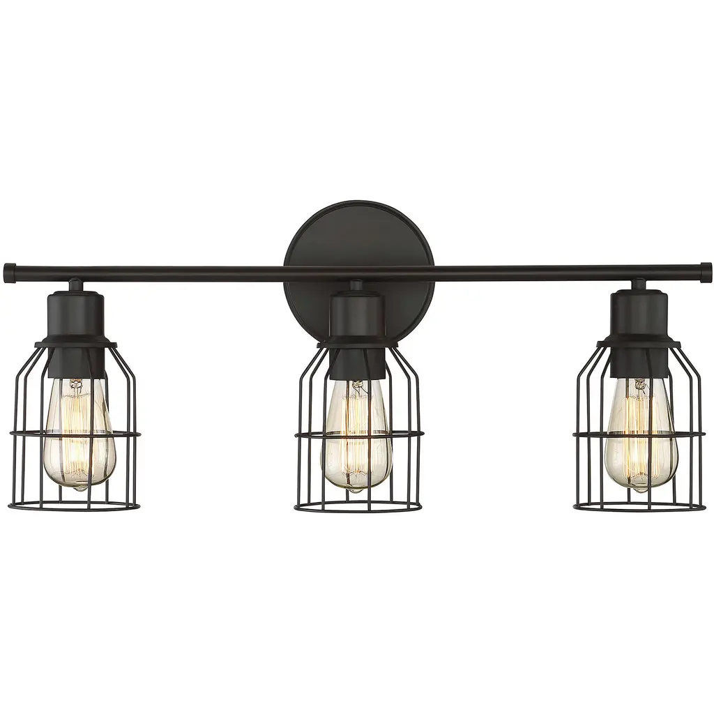 INNOVATIONS LIGHTING 516-3W-BK-CE219-LED Bleecker 3 Light Bath Vanity Light. The Bleecker 3 Light Bath Vanity Light is part of the Austere Collection. . Collection: Austere. Material: Steel, Cast Brass. Metal Finish(Body): Matte Black. Metal Finish(Shade): Matte Black. Metal Finish (Canopy/Backplate): Matte Black. Dimension(in): 12(H) x 26(W) x 7(Ext). Bulb: (3)3.5 Watt LED Vintage Medium Base Bulb Included. Dimmable: Yes. Color Temperature(Kelvin): 2700. Lumens: 350. Color Rendering Index(CRI): 82. Voltage: 120. Glass or Metal Shade Shape: Cone. Glass or Metal Shade Color: Matte Black. Shade Material: Metal. Shade Size (Diameter x Height)(in): 3.5 X 7. Canopy Dimensions(in): . Backplate Dimensions(in): 4.5x6x0.75. Certification: UL & ETL, Damp Location.