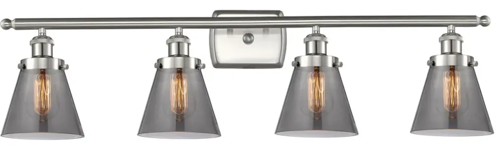 INNOVATIONS LIGHTING 916-4W-OB-G53 Small Bell 3 Light Bath Vanity Light part of the Ballston Collection. The Small Bell 3 Light Bath Vanity Light is part of the Ballston Collection. . Collection: Ballston. Metal Finish (Body): Oil Rubbed Bronze. Metal Finish (Canopy/Backplate): Oil Rubbed Bronze. Glass or Metal Shade Color: Plated Smoke. Material: Steel, Cast Brass, Glass. Shade Material: Glass. Dimension(in): 12(H) x 36(W) x 6.5(Ext). Backplate Dimension(in): 4.5(H) x 6(W) x 0.75(D). Shade Size(in): 6(H) x 5(Dia). Bulb: (4)60W Incandescent Medium Base(Not Included). Voltage: 120. Dimmable: Yes. Color Temperature(Kelvin): 2200. CRI: 99.9. Lumens: 220. Glass Shade: Plated Smoke Small Bell. Glass Type: Colorful . Glass or Metal Shade Shape: Bell. Shade Fitter Measurement: Neckless with a 2.125 inch Hole. Style: Industrial, Modern Contempo, Restoration-Vintage, Transitional . Ul Certification Type: Damp Location. Warranty: 2 Year Finish, Lifetime Electrical.