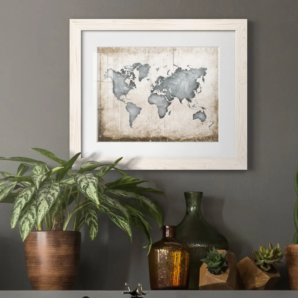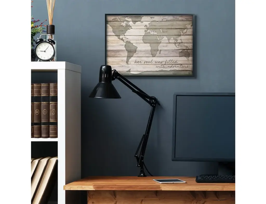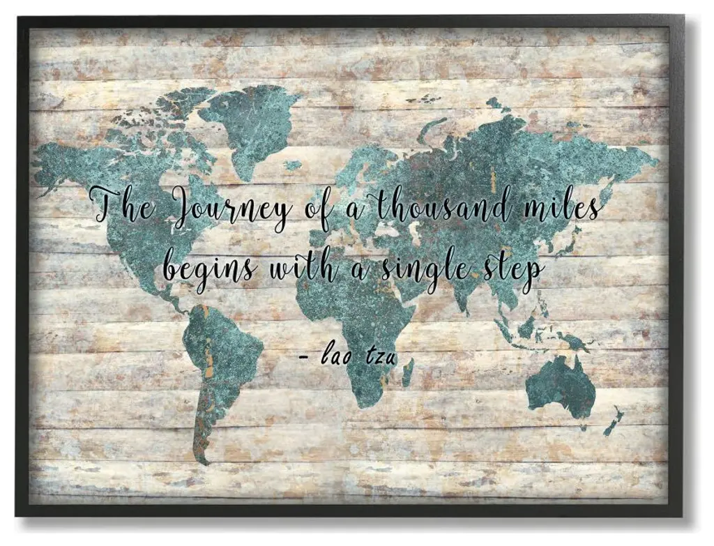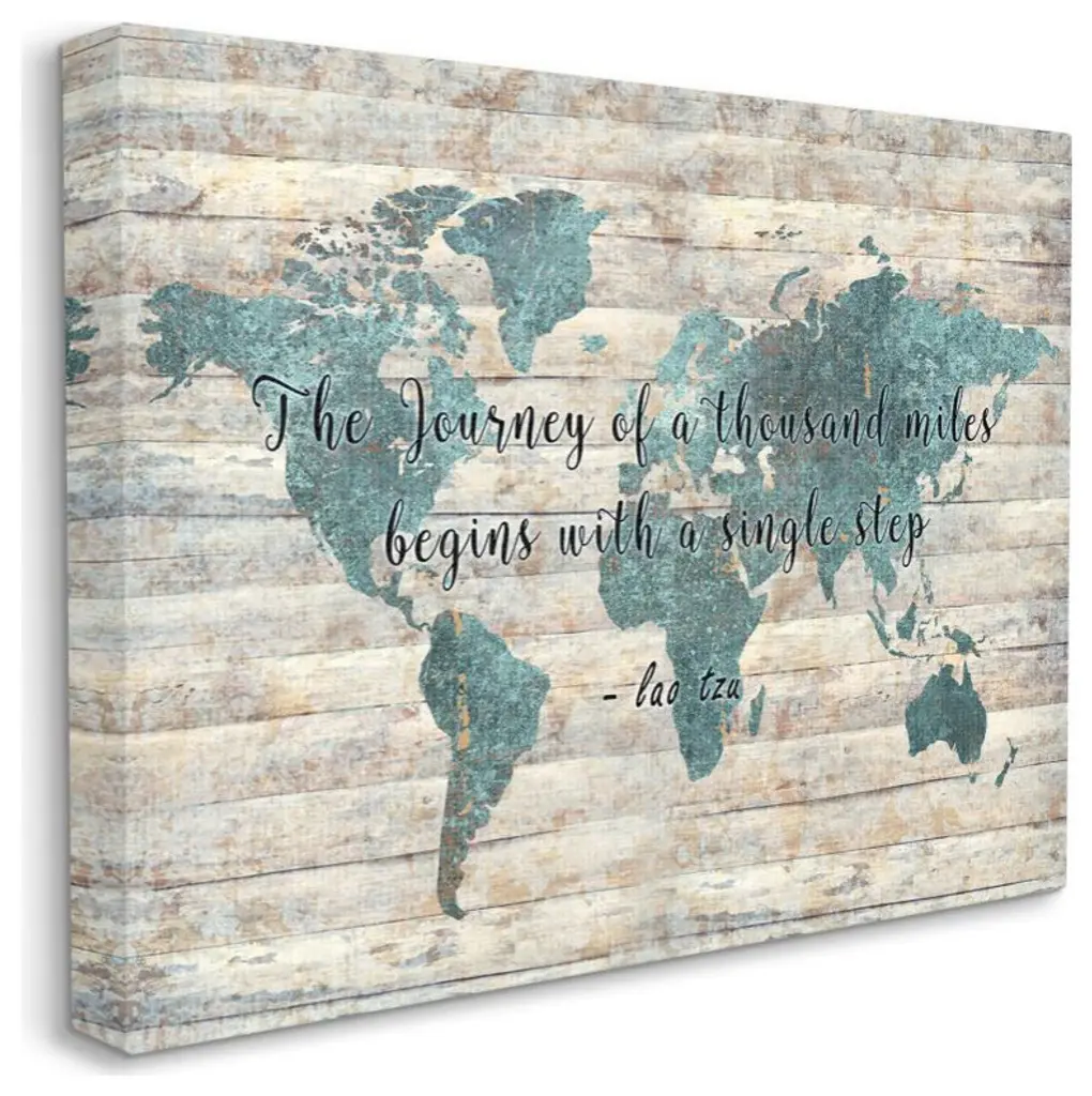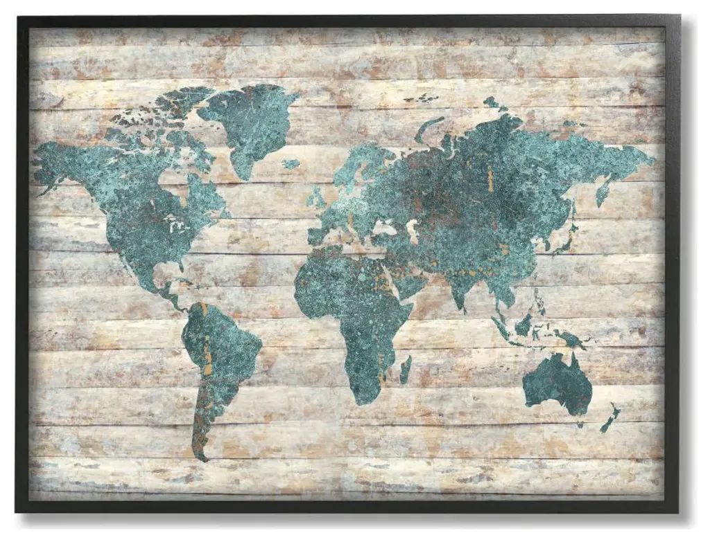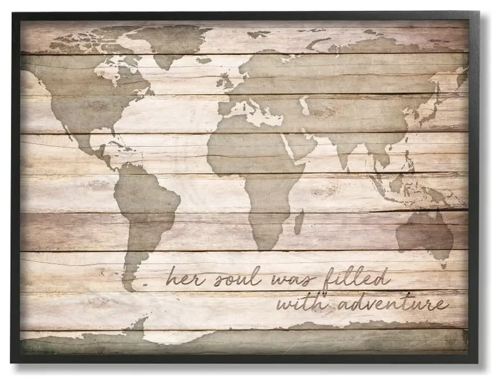 Inspirational Word World Map Wood Te"xture Design, 24"x30"