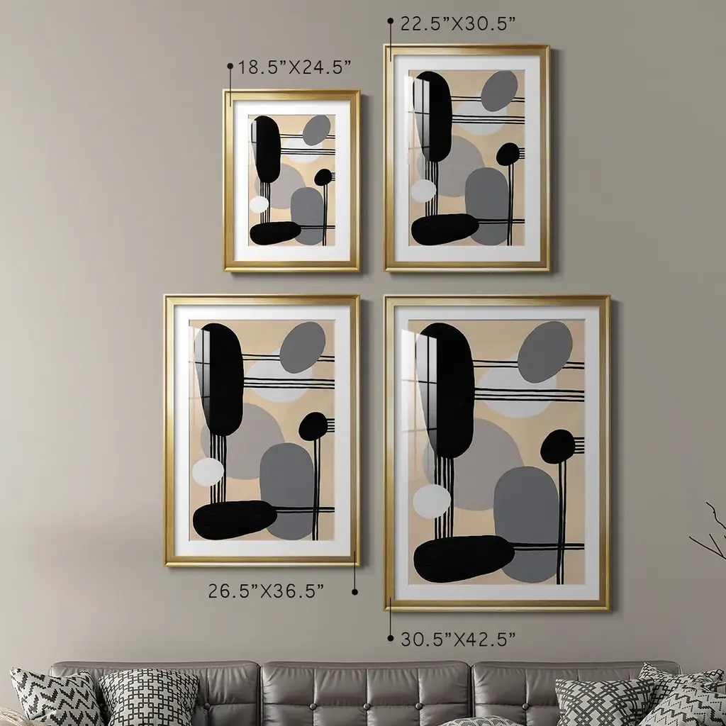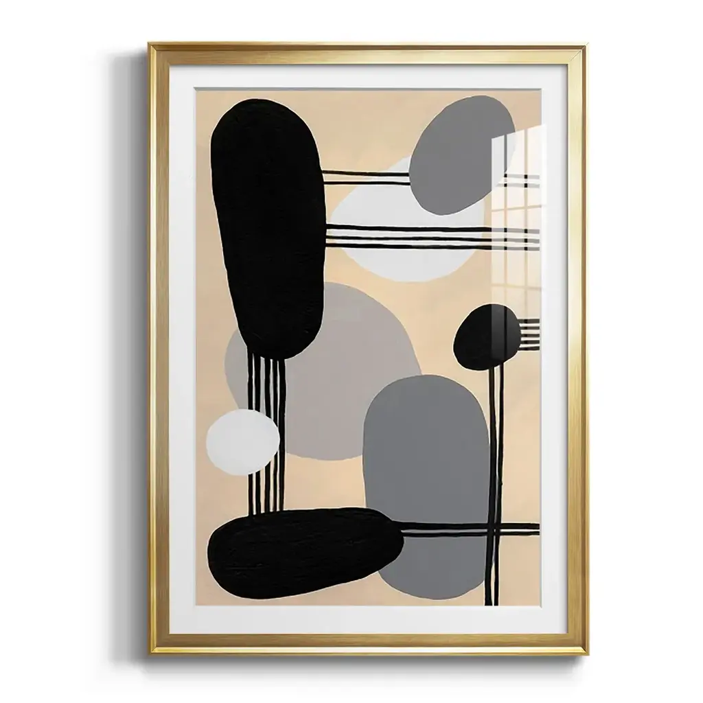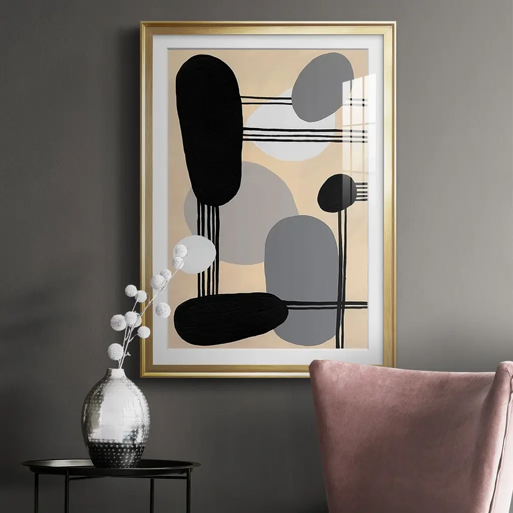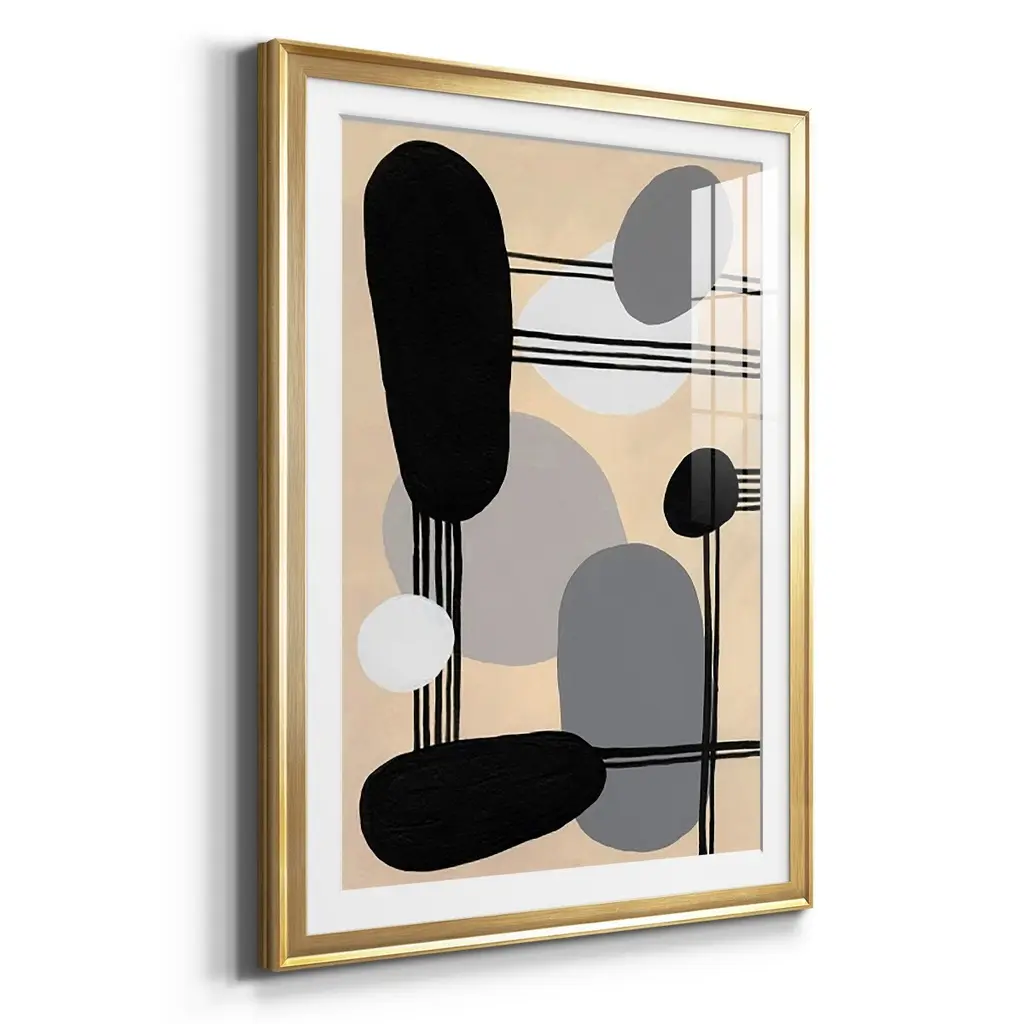 Interconnected Shapes I Premium Framed Print - Ready to Hang A Premium Framed Print created to last. Framed in distressed wood and available in an array of sizes and colors Featuring a beveled a solid wood stretcher bar, each piece comes ready to hand 4 SIZES AVAILABLE 30.5''X42.5'' - Overall Size 26.5'X36.5'' - Overall Size 22.5''x30.5'' - Overall Size 18.5''x24.5'' - Overall Size Each piece is made to order. Each piece comes with hanging hardware. Made in the USA Ready to Hang Giclee Paper Print Acrylic Glass Beveled Matt Board