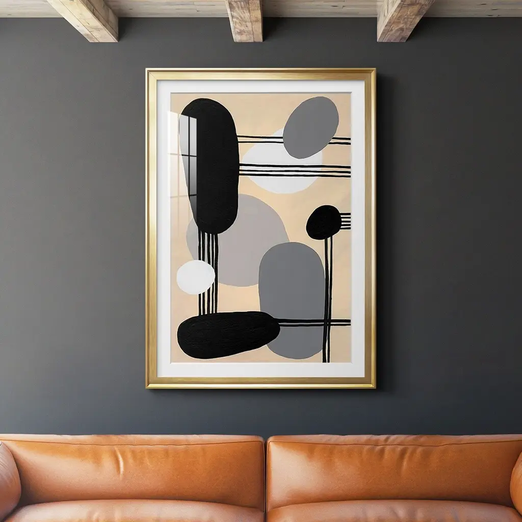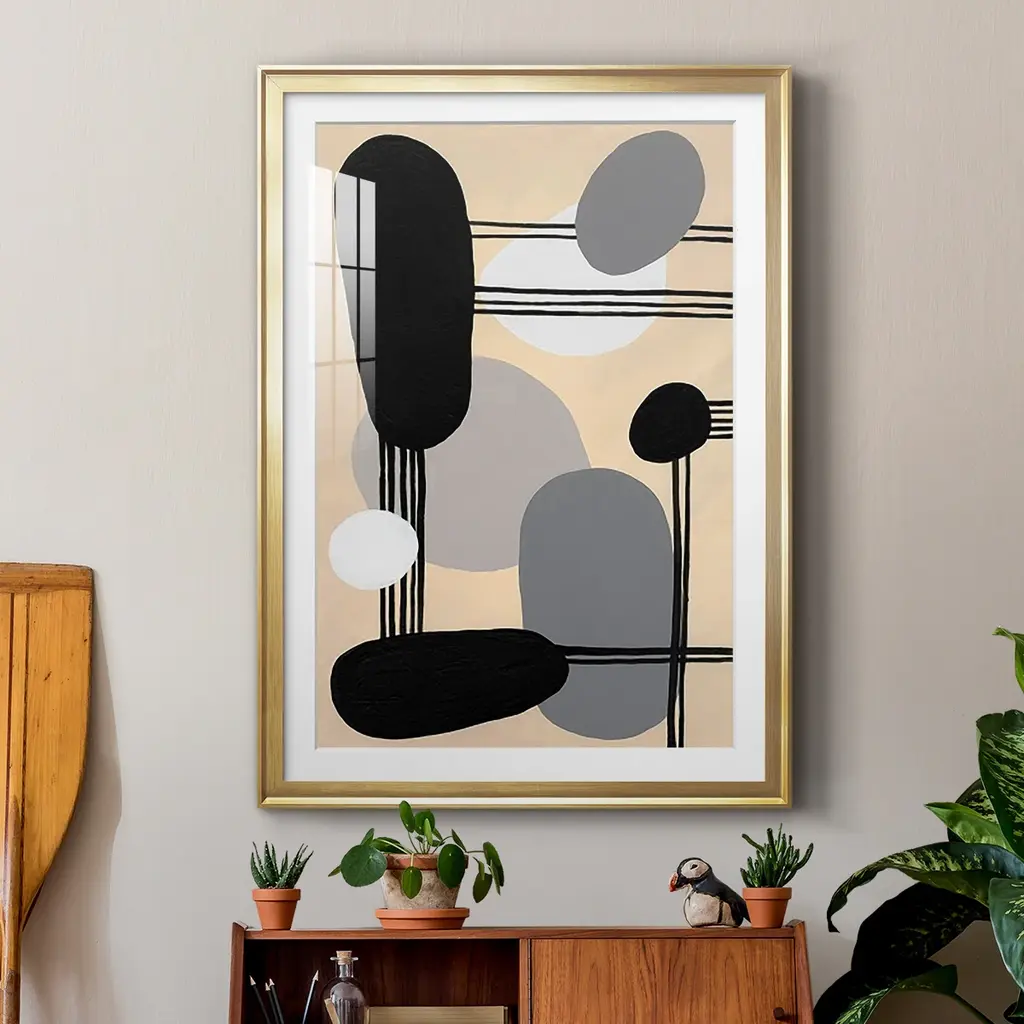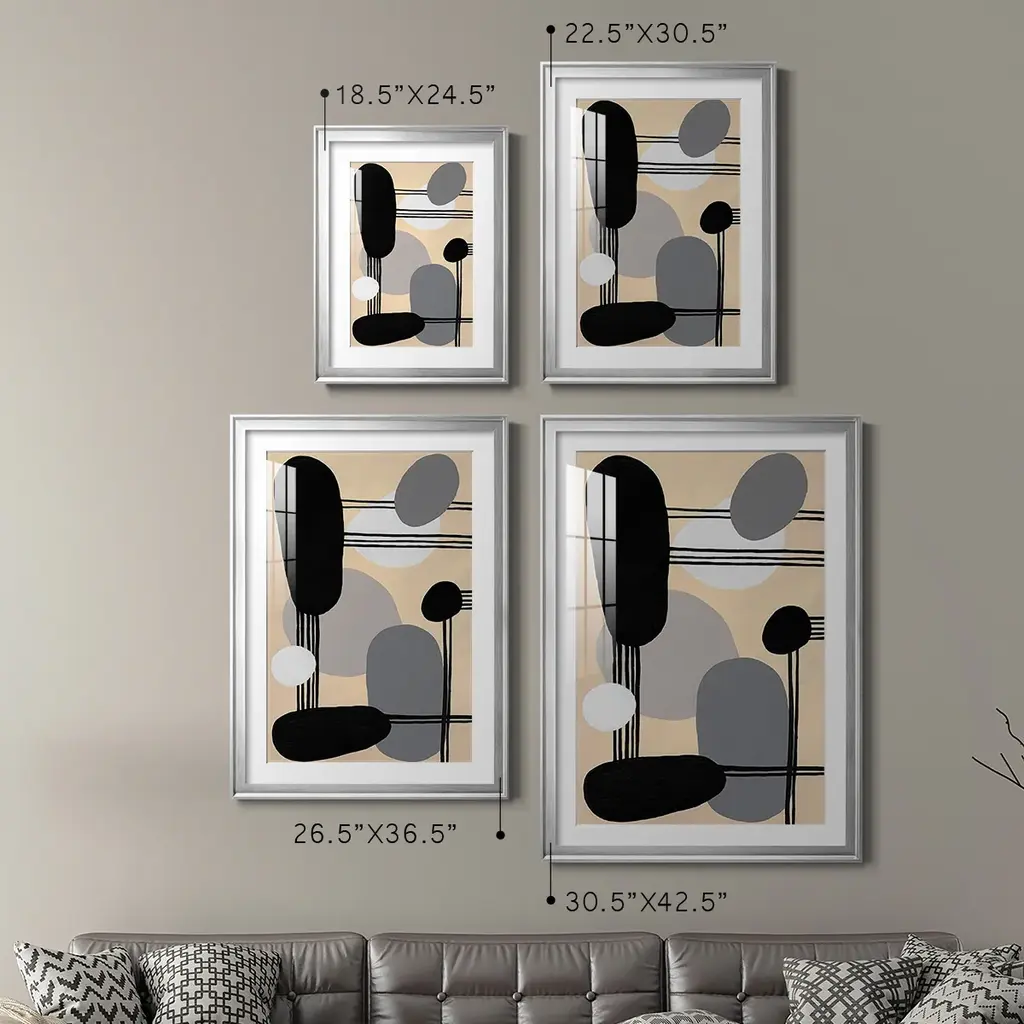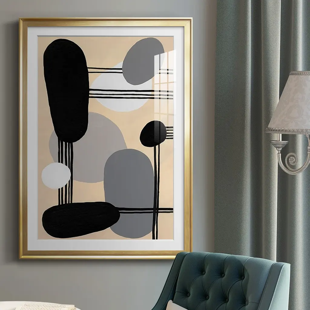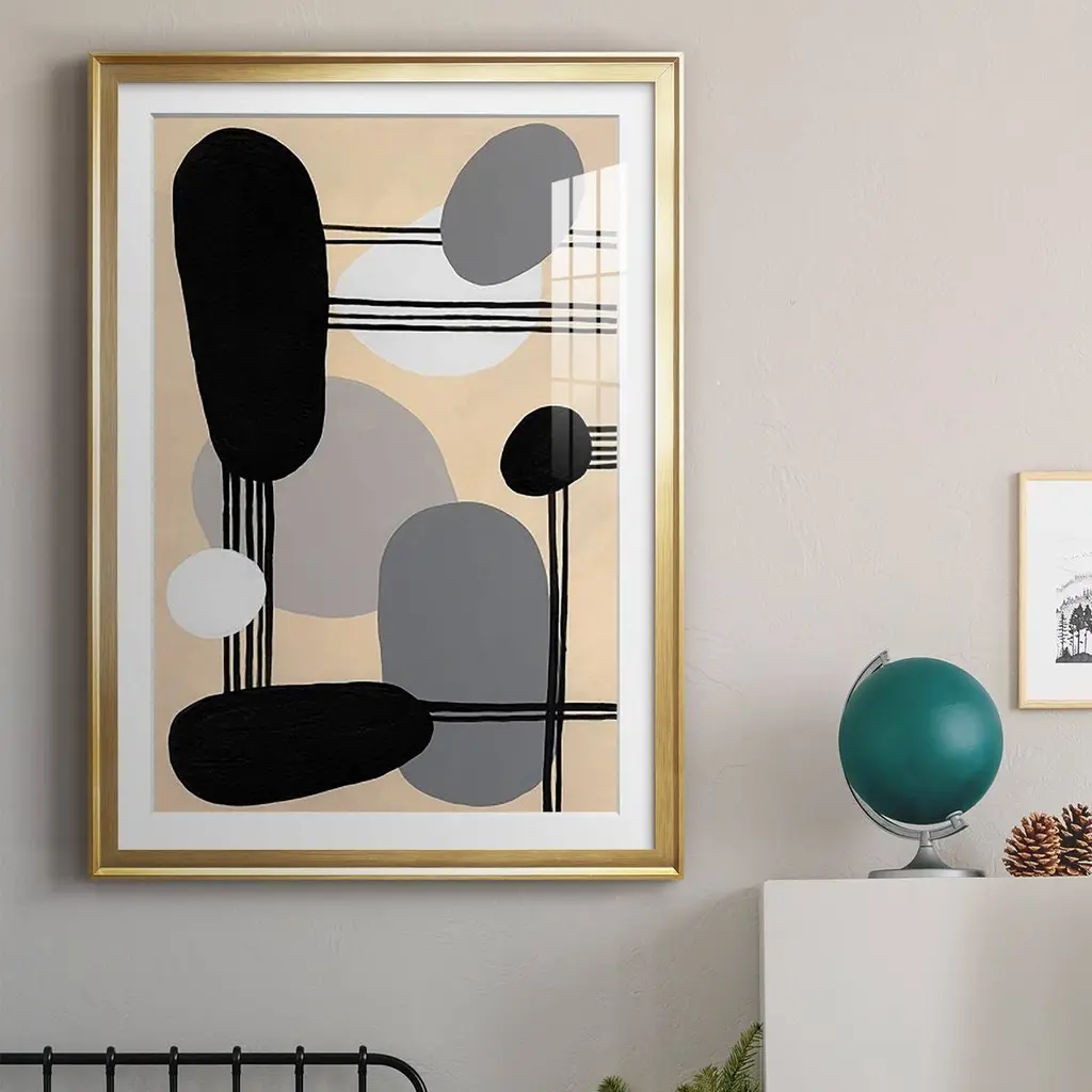 Interconnected Shapes I Premium Framed Print - Ready to Hang A Premium Framed Print created to last. Framed in distressed wood and available in an array of sizes and colors Featuring a beveled a solid wood stretcher bar, each piece comes ready to hand 4 SIZES AVAILABLE 30.5''X42.5'' - Overall Size 26.5'X36.5'' - Overall Size 22.5''x30.5'' - Overall Size 18.5''x24.5'' - Overall Size Each piece is made to order. Each piece comes with hanging hardware. Made in the USA Ready to Hang Giclee Paper Print Acrylic Glass Beveled Matt Board
