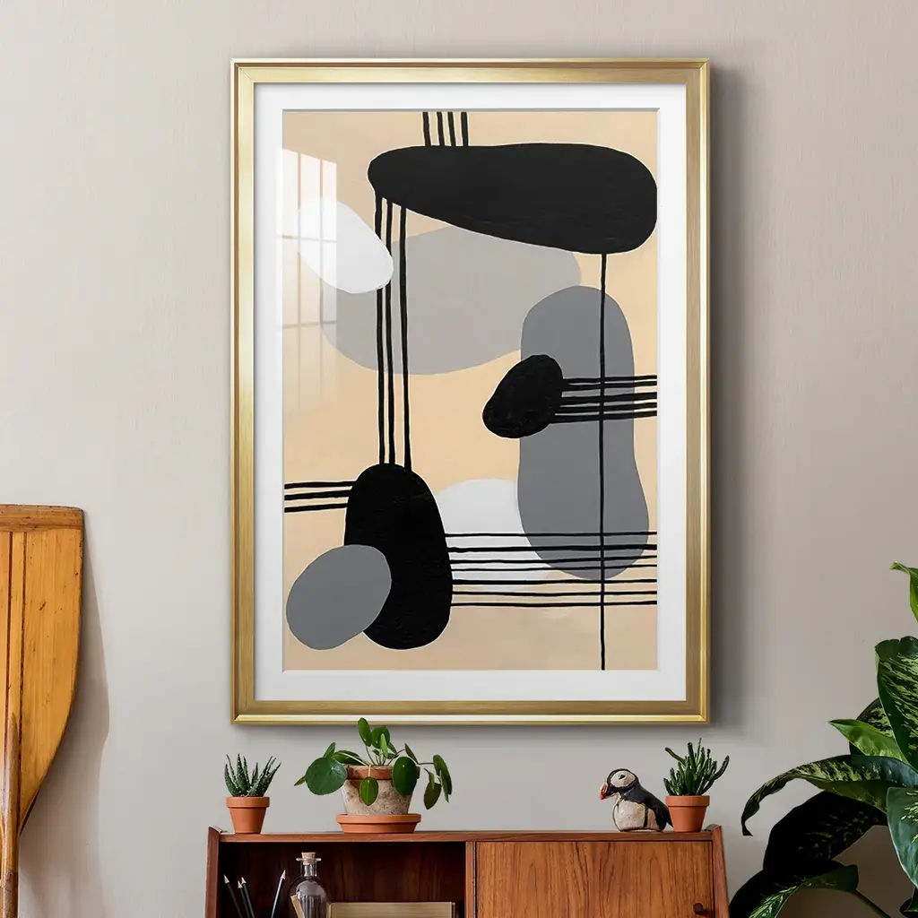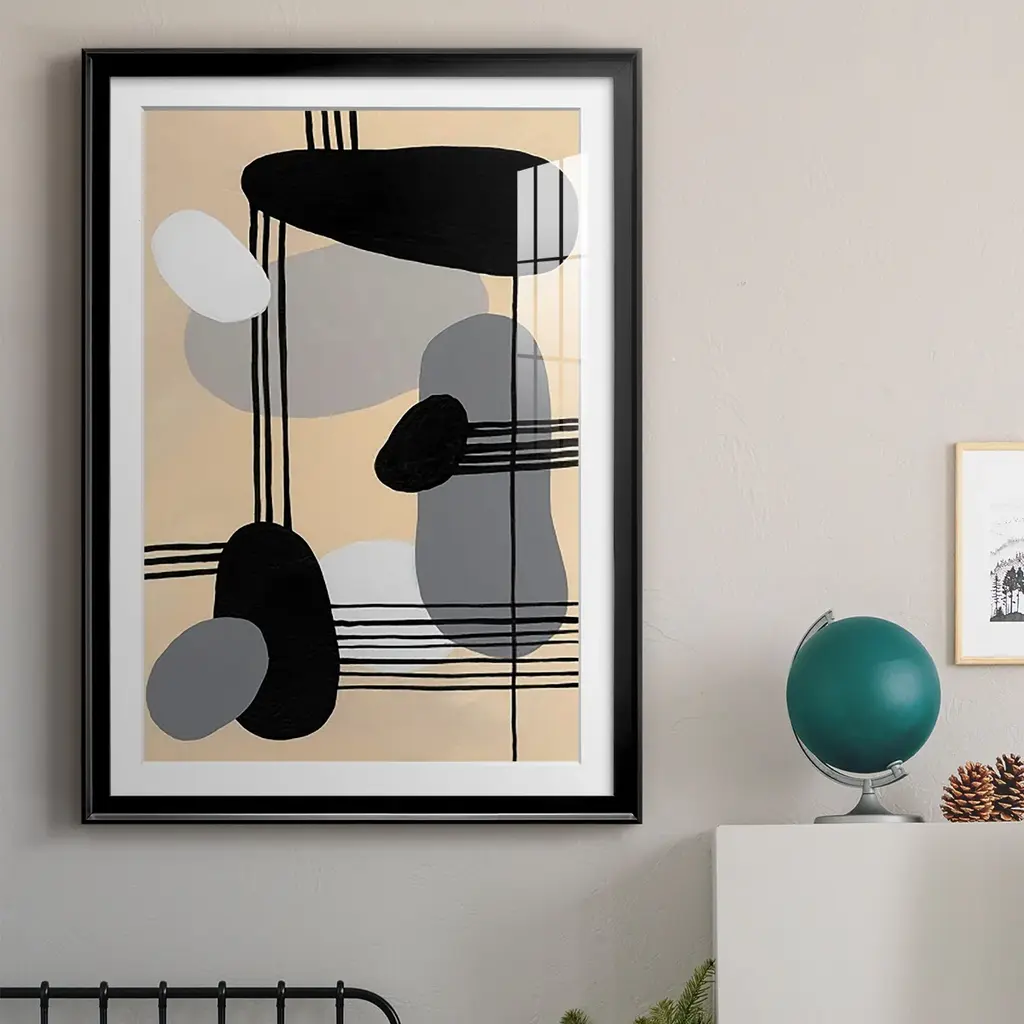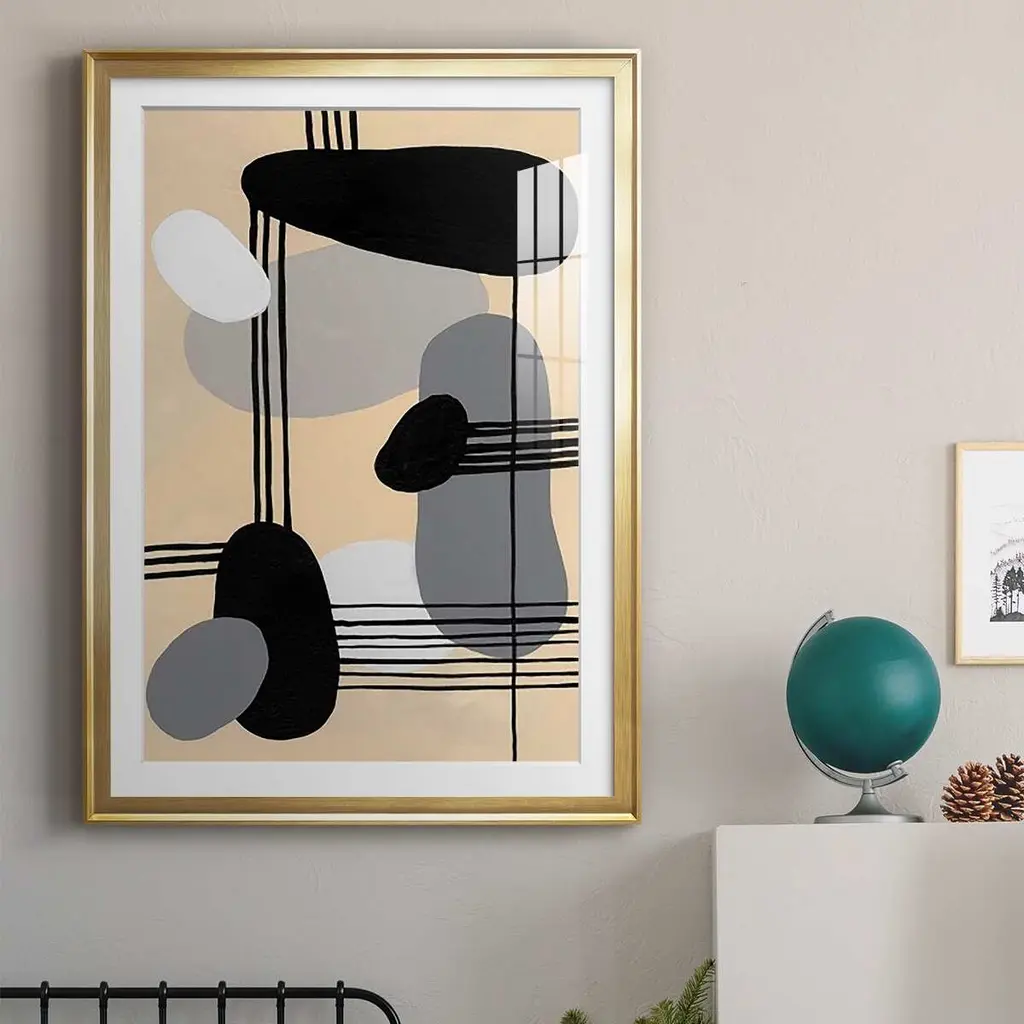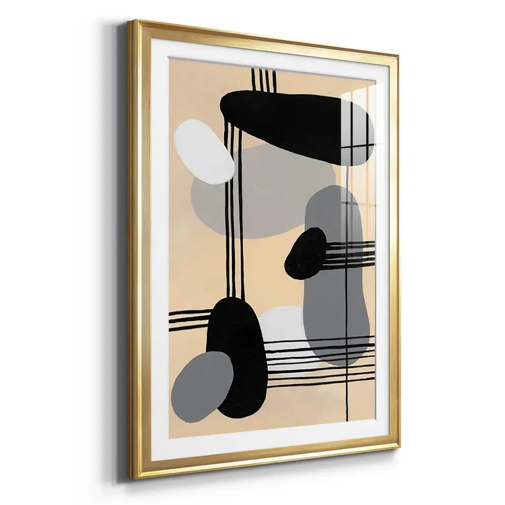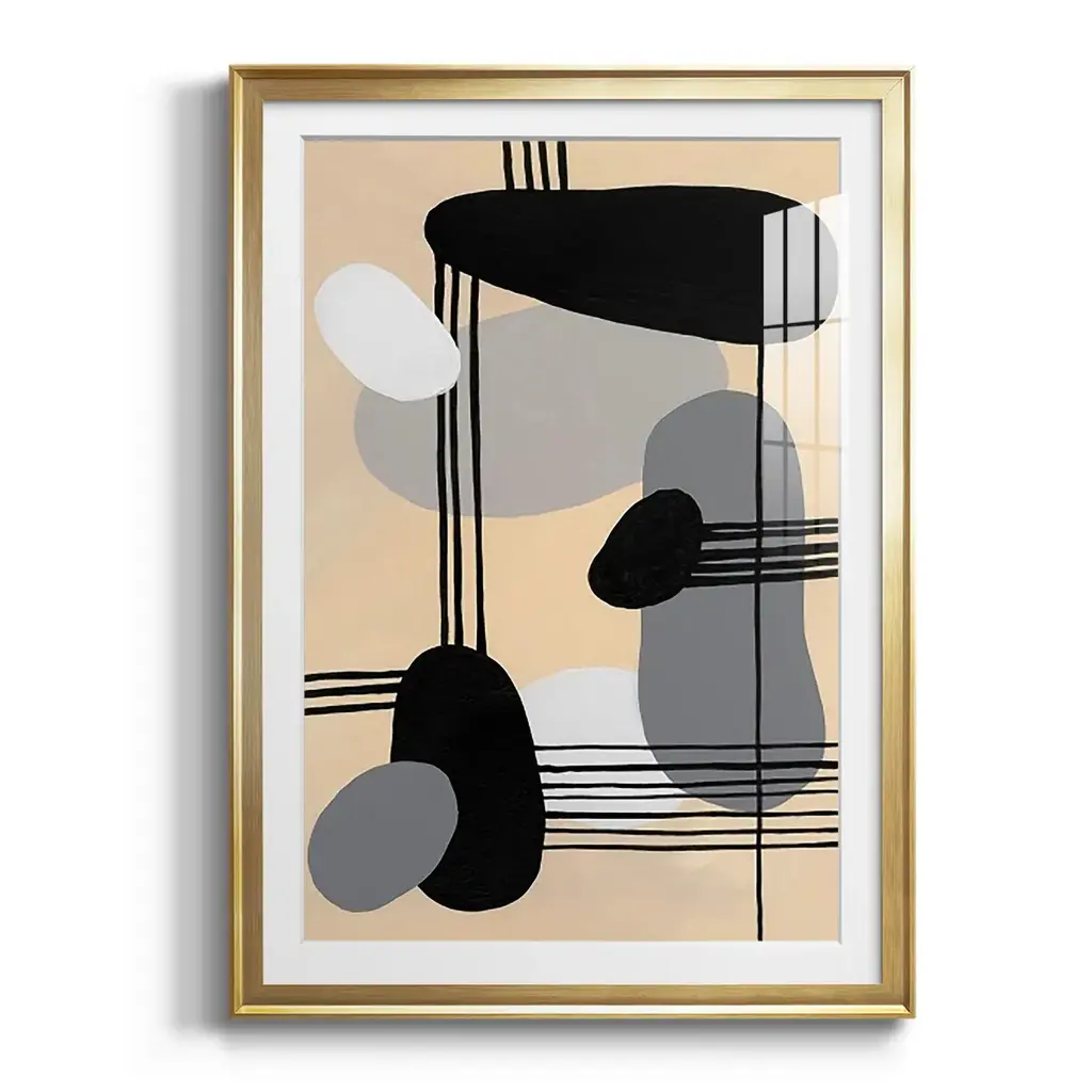 Interconnected Shapes II Premium Framed Print - Ready to Hang A Premium Framed Print created to last. Framed in distressed wood and available in an array of sizes and colors Featuring a beveled a solid wood stretcher bar, each piece comes ready to hand 4 SIZES AVAILABLE 30.5''X42.5'' - Overall Size 26.5'X36.5'' - Overall Size 22.5''x30.5'' - Overall Size 18.5''x24.5'' - Overall Size Each piece is made to order. Each piece comes with hanging hardware. Made in the USA Ready to Hang Giclee Paper Print Acrylic Glass Beveled Matt Board