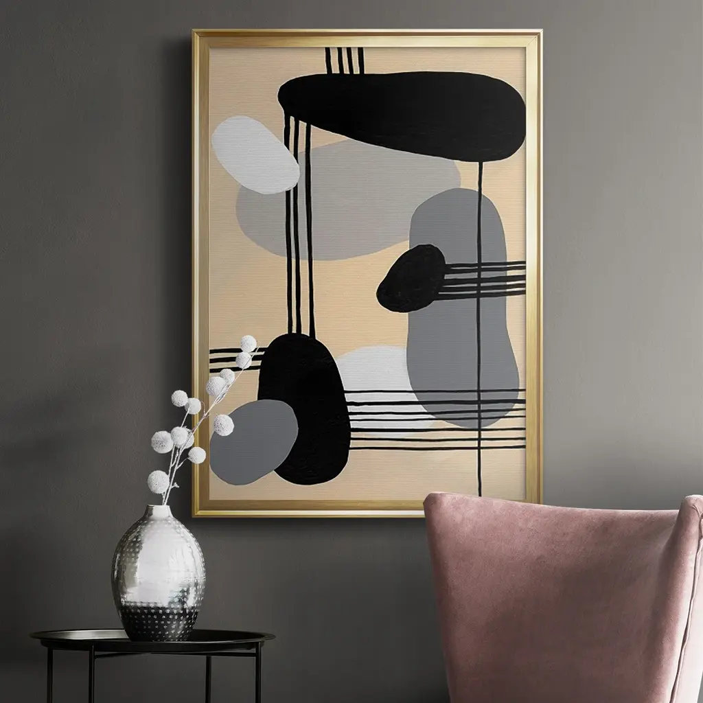 Interconnected Shapes II Premium Framed Print - Ready to Hang A Premium Framed Print created to last. Framed in distressed wood and available in an array of sizes and colors Featuring a beveled a solid wood stretcher bar, each piece comes ready to hand 4 SIZES AVAILABLE 30.5''X42.5'' - Overall Size 26.5'X36.5'' - Overall Size 22.5''x30.5'' - Overall Size 18.5''x24.5'' - Overall Size Each piece is made to order. Each piece comes with hanging hardware. Made in the USA Ready to Hang
