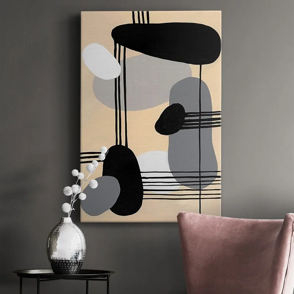 Interconnected Shapes II Premium Gallery Wrapped Canvas - Ready to Hang A premium hand stretched gallery wrapped canvas print created to last. Featuring a beveled a solid wood stretcher bar, each piece comes ready to hand 6 SIZES AVAILABLE 8''X12'' - Overall Size 12''X18'' - Overall Size 18''X27'' - Overall Size 24''x36'' - Overall Size 32''x48'' - Overall Size 40''x60'' - Overall Size Each piece is made to order. Built to Last Each piece comes ready to hang Solid wood stretcher Fade and Water resistant Made domestically