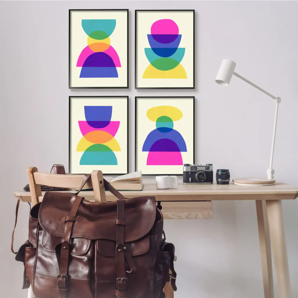 Intergalactic Rainbow Abstract Transparent Geometric Shapes , 4Pc, Each 16 X 20