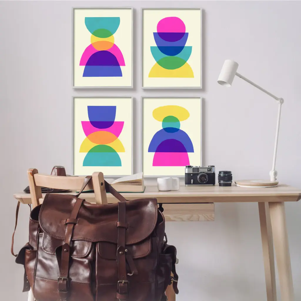 Intergalactic Rainbow Abstract Transparent Geometric Shapes , 4Pc, Each 16 X 20