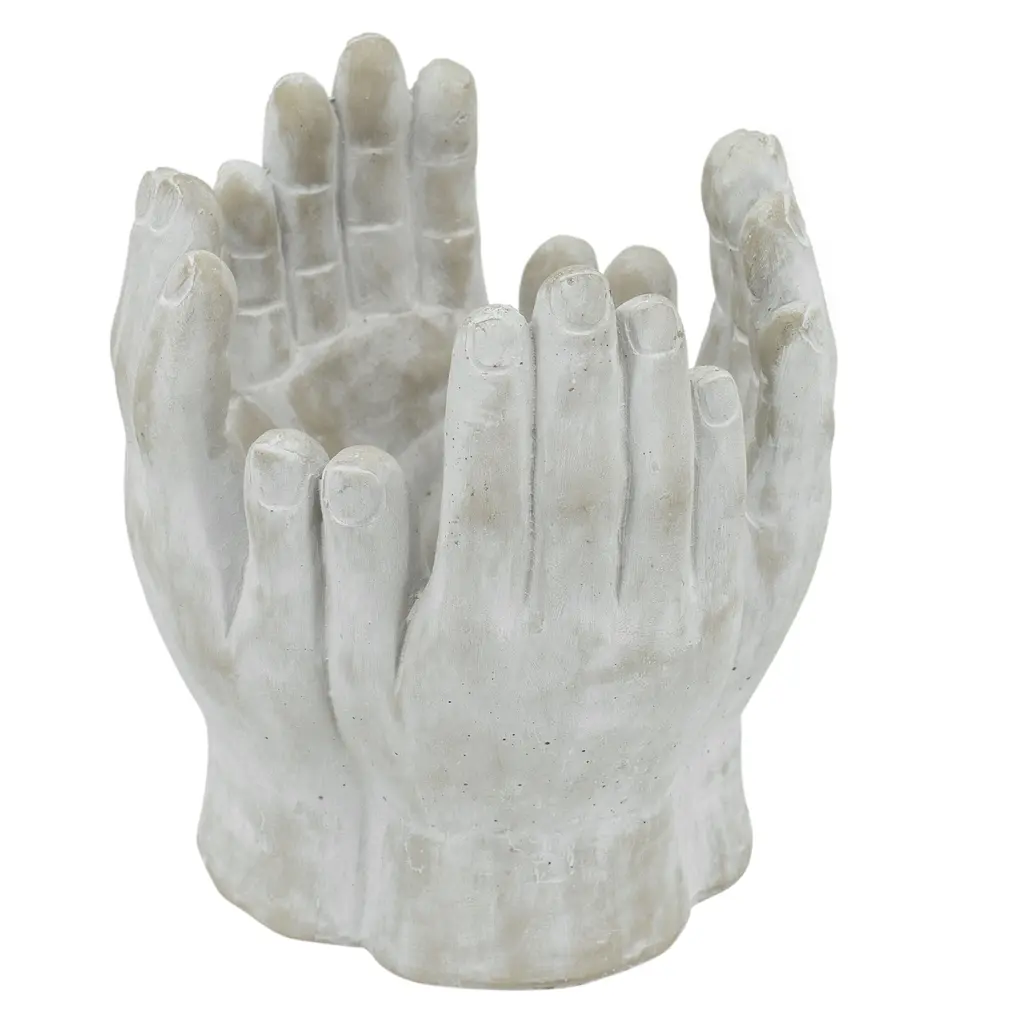 Invite a little life into your space. This hand sculpture is perfect for displaying your favorite jewelry, hand accessories, and other small items. Grab one for a simple effect. Grab a couple or a few for an item display that looks alive. Mix and match several styles strategically over a choice wall decal, painting, or backdrop, and watch your efforts burst into life in a dazzling display. A white coat finish invites you to get a little more creative.Expression comes in all forms, do so, only with designs worthy of your space.Need another color or style? Check out our other colors, styles, and finishes, part of our Hands Collection.Not quite it? Browse our several unique sculptures, wall mounts, and other curiosities that set a new bar for eclectic styling. Specifications:- Imported- Material: Ceramic- Color: White - Weight: 1 lbs.- Dimensions (inches, LxWxH): 7.5 x 4.5 x 2.5- This item is a handmade product. There may be some minor defects in which it will not affect the overall appearance of the product and it is not a quality problem. Please understand this before placing your order.