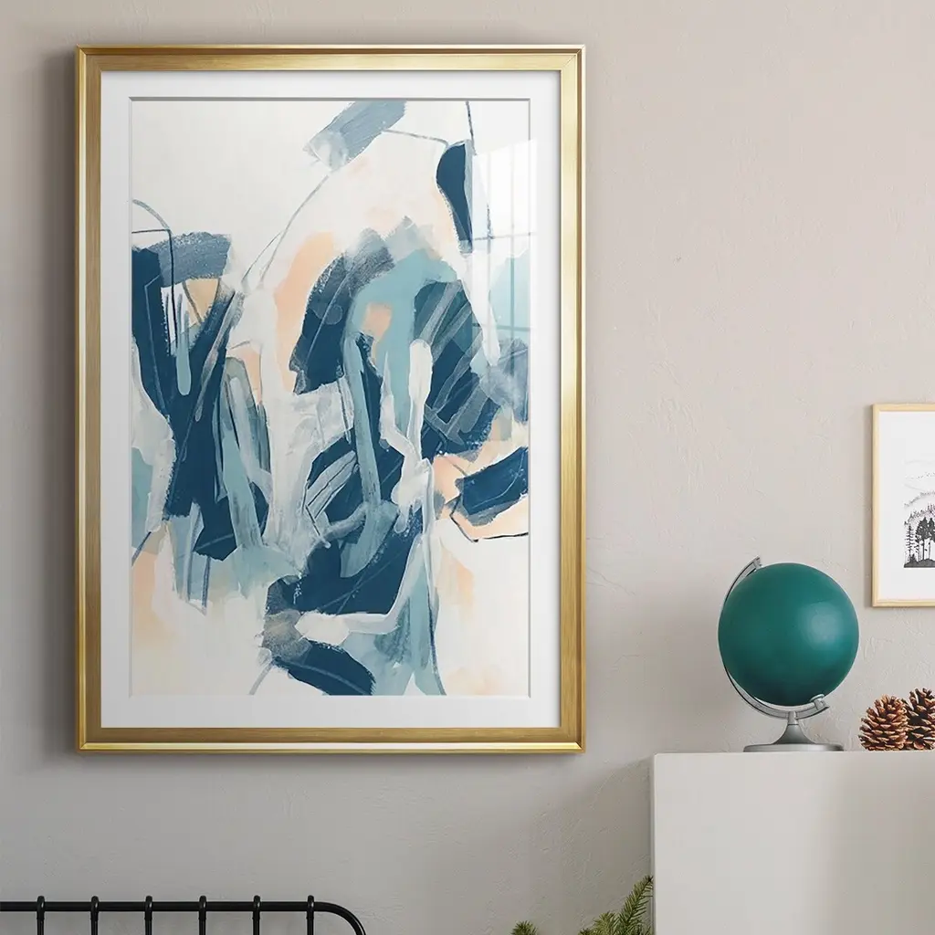 Interlocking Melody I Premium Framed Print - Ready to Hang A Premium Framed Print created to last. Framed in distressed wood and available in an array of sizes and colors Featuring a beveled a solid wood stretcher bar, each piece comes ready to hand 4 SIZES AVAILABLE 30.5''X42.5'' - Overall Size 26.5'X36.5'' - Overall Size 22.5''x30.5'' - Overall Size 18.5''x24.5'' - Overall Size Each piece is made to order. Each piece comes with hanging hardware. Made in the USA Ready to Hang Giclee Paper Print Acrylic Glass Beveled Matt Board