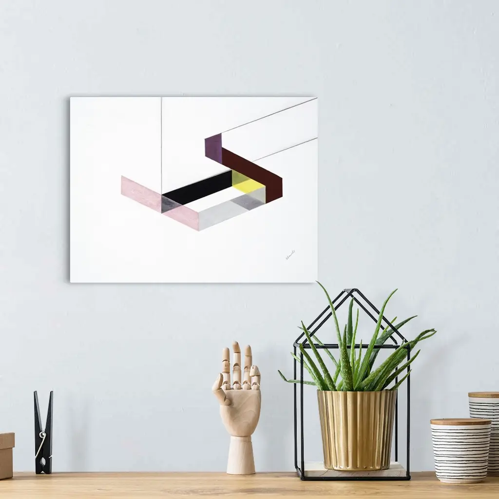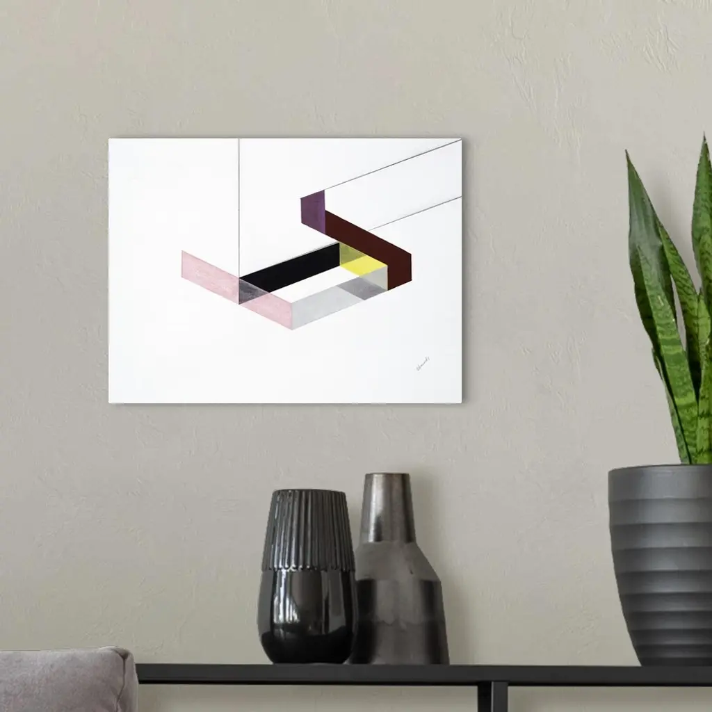 A simple painting of geometric shapes in a zigzag of multi-colors.