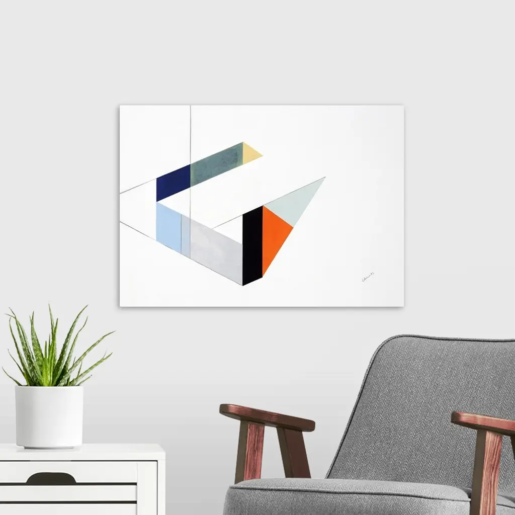 A simple painting of geometric shapes in a zigzag of multi-colors.