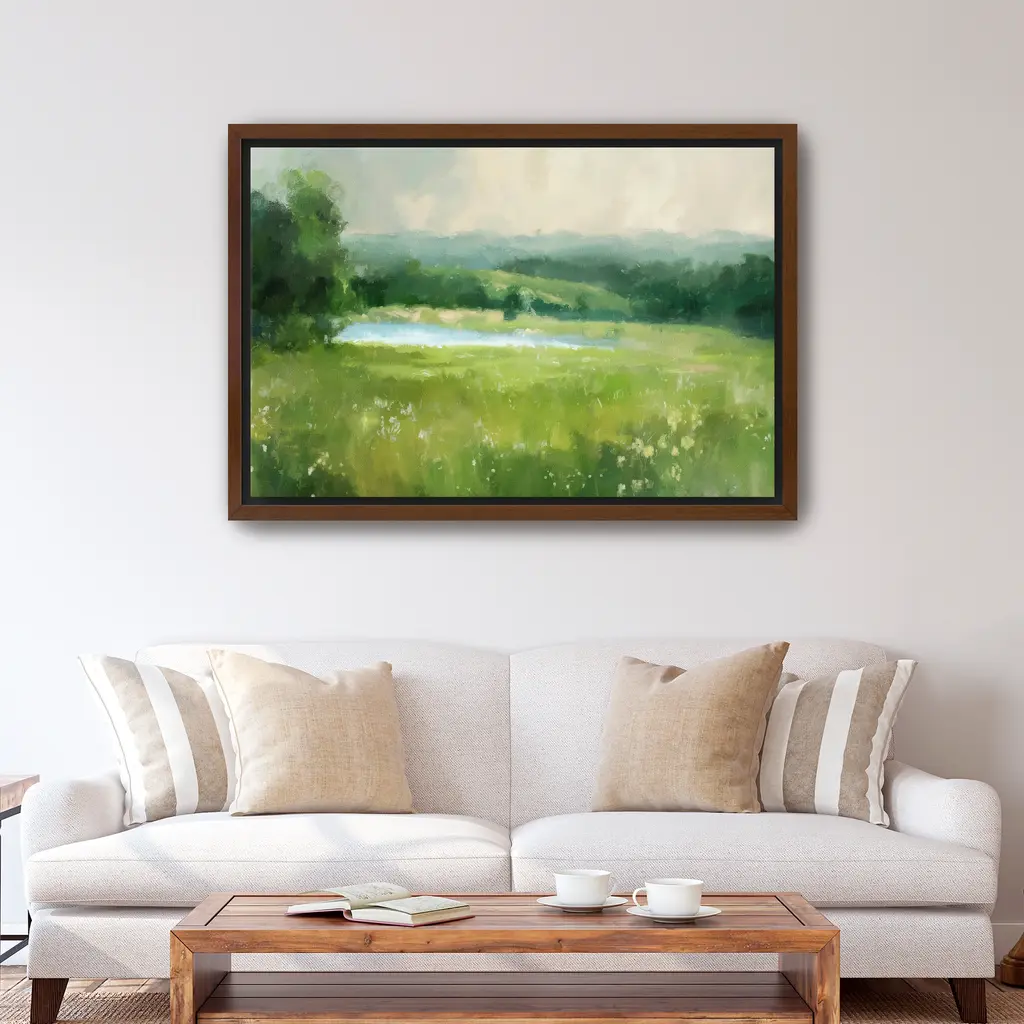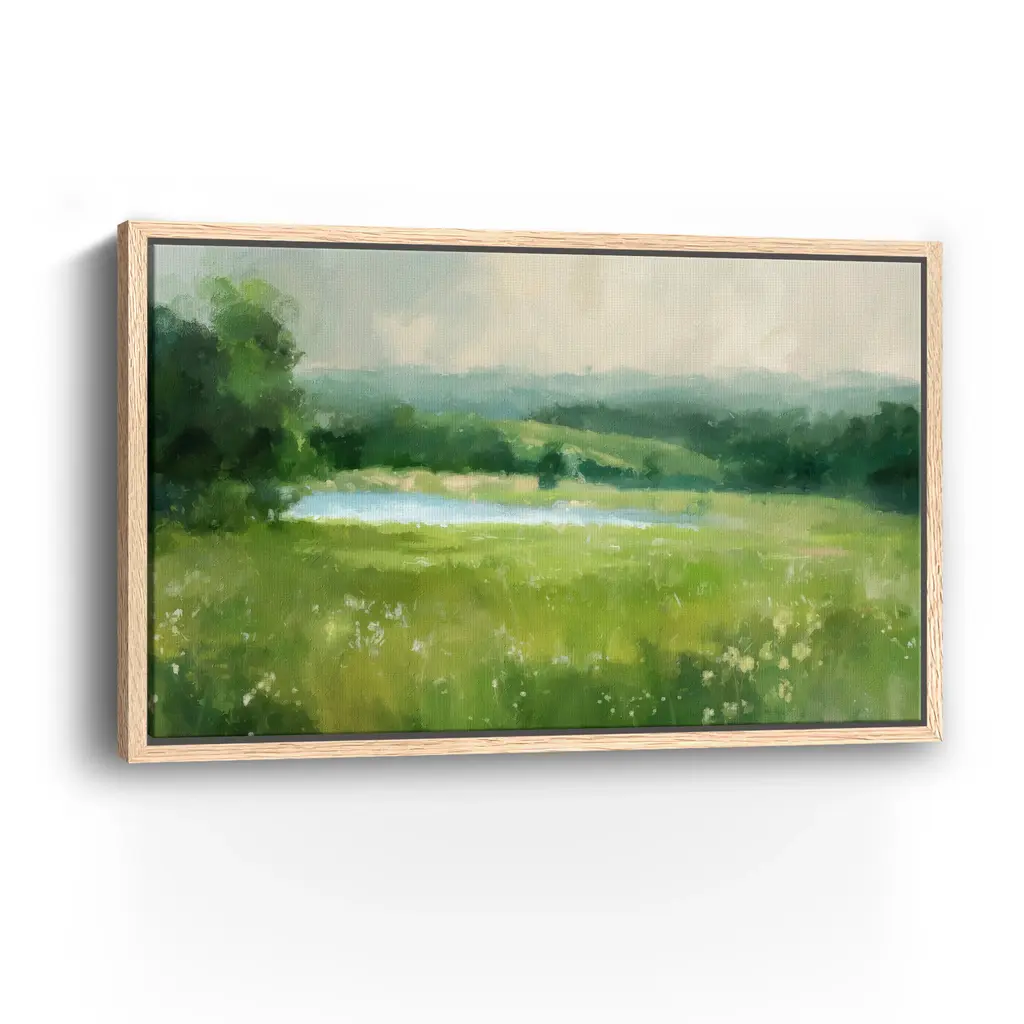 Transform your space with this mesmerizing green abstract moody landscape "Into The Meadows" canvas art by Aeious Plata. Featuring deep green tones and dynamic compositions, this artwork evokes a sense of mystery and tranquility. The rich colors and captivating design create an atmosphere of sophistication and elegance, making it an ideal statement piece for both contemporary and classic interiors. Available in black frame, dark walnut frame, oak frame, or as a wrapped canvas. Our Gallery Wrap Canvas Prints are proudly assembled with high quality materials in California, USA. Each piece is printed on a thick, archival grade canvas using Giclee technology. It is then hand-stretched by our experienced artisans over solid wood bars, which will not warp over time. The final product is a piece personally crafted for you to confidently display on your wall. Care and Assembly: Ensure that the location of your piece has little to no exposure to heat, sunlight, and moisture. Wipe clean, only if needed. Each piece includes a sawtooth hanger to hang on your wall horizontally.