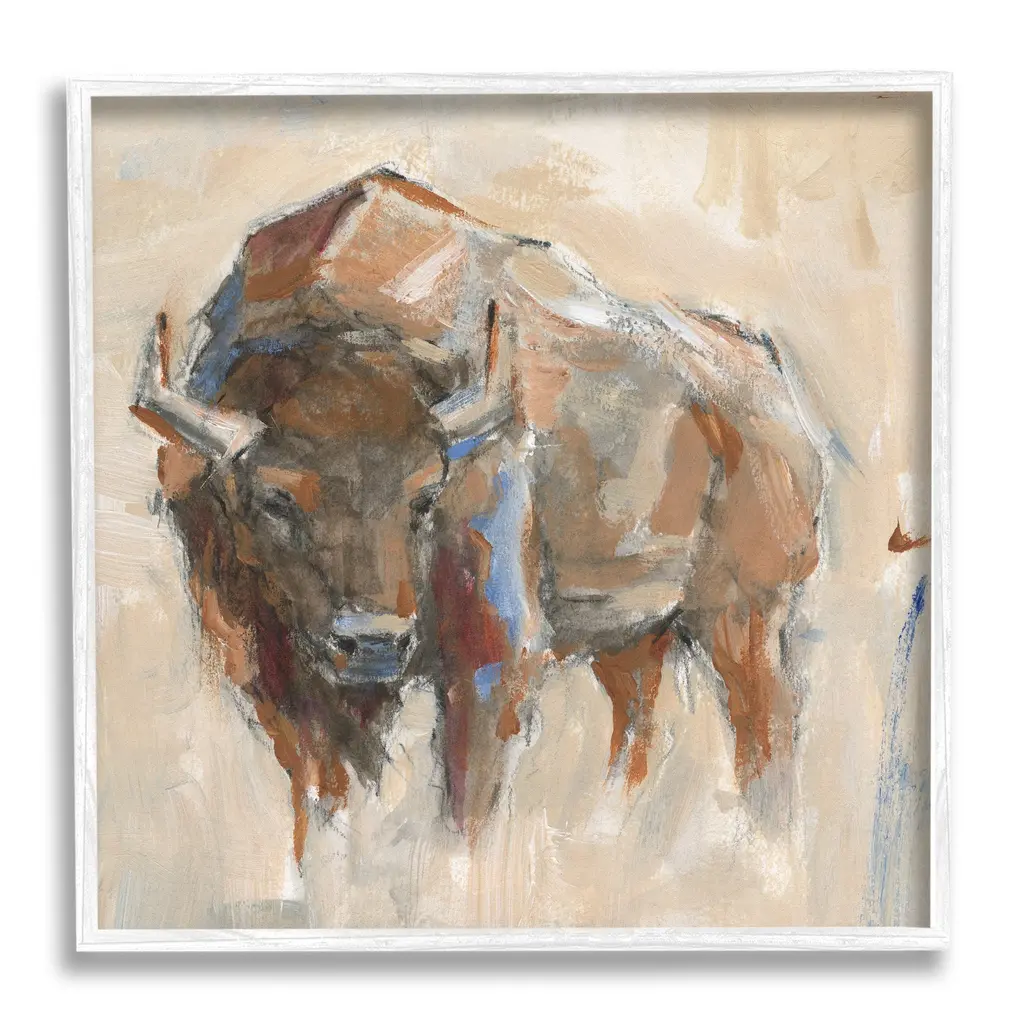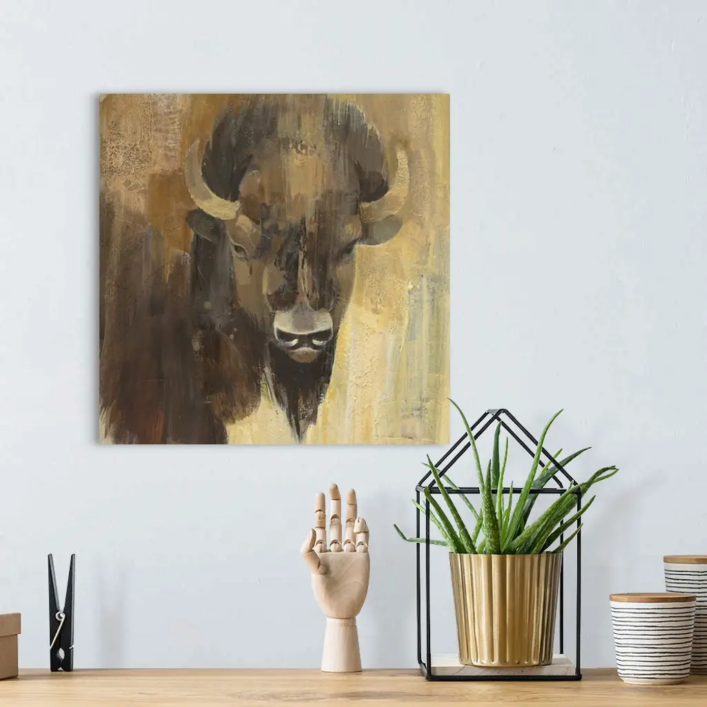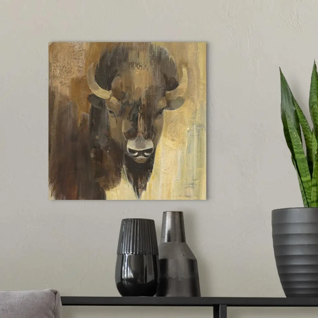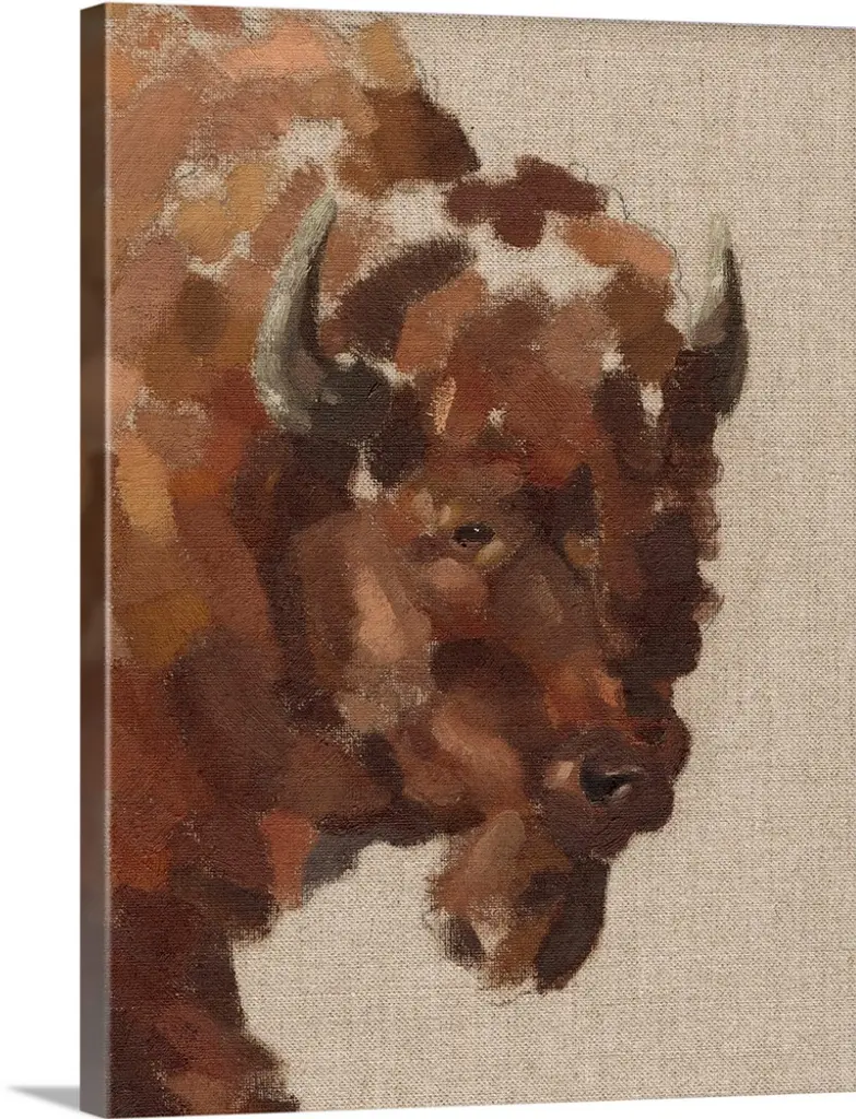 Contemporary wildlife painting of a bison staring at viewer.
