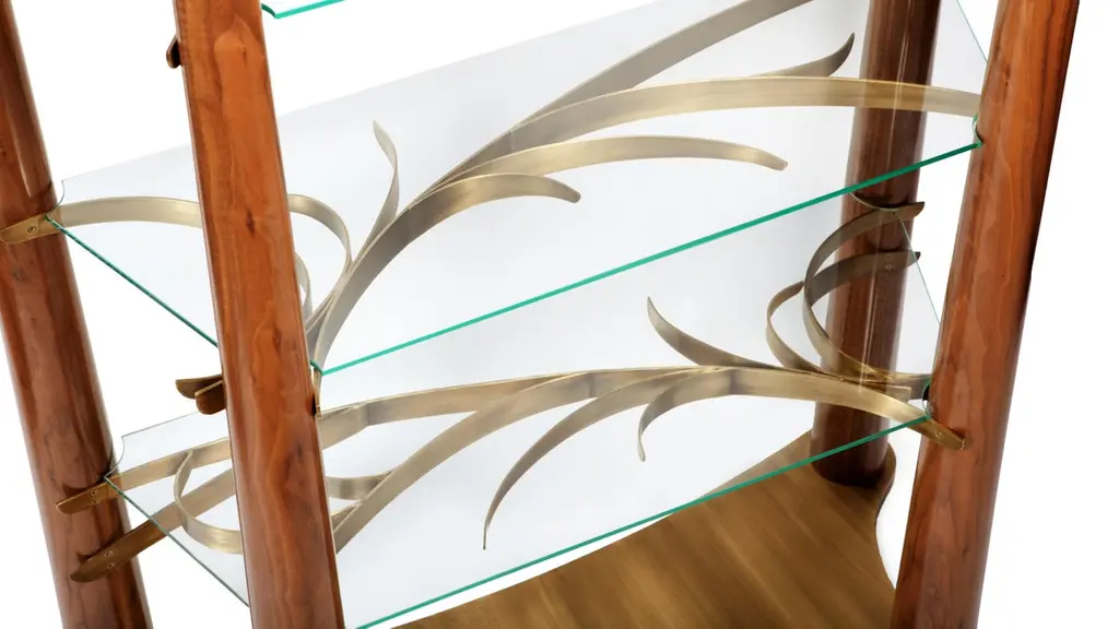 Into The Woods Sideboard by InsidherLandDimensions: D 49 x W 120 x H 190 cm.Materials: Wooden structure: white lacquered with high gloss varnish. Base and shelves: oxidized brushed brass. Shelves: glass.70 kg.Many years after visited the heart of Sweden, Joana Santos Barbosa creates ‘Into the Woods’ bookcase to celebrate the charm of Nordic nature and the mysterious journey that led up to one of the most memorable places she has ever met. Into the Woods’ is a bookcase that carries the feeling of a long walk through the forest beneath intertwined branches of huge trees with the goal of reaching the top of a mountain.The enchanting path is captured by the angular shape of the bookcase in which four vertical elements in walnut obtain a slight slope that emphasizes the perspective of the lengthy tree trunks along the way. Using the same method, the height of each element is also highlighted by the tapered end, as if we were looking to the slender trees reaching the sky.In a gentle embrace, each vertical element extends an arm of stylized blades in oxidized brushed brass designed to freely touch the remaining tree trunks and create four shelves repeated in different directions. Above each shelf, the glass top holds up in the interior space so that the vertical elements may be admired as monumental tree trunks.Each organic element of the bookcase was designed to create a variety of shadows that move according to the lights of the surrounding space. It’s the richness of the woods glimpsed by the most dazzling creation.Created by Architect Joana Santos Barbosa in 2012, InsidherLand is a Portuguese brand of exclusive design. Drawn with the signature of the creator, the impressive range of contemporary luxury furniture, lighting, upholstery and accessories are connected to her personal memories and have been highlighted for their innovative and soulful designs.Joana explores several influences from travels around the world to define her own Land as a place that allows her to translate her perceptions into objects of art.The essence of InsidherLand is presented by two inspiring collections. Beyond Memory Collection is deeply influenced by organic forms of nature, legends and traditional cultures, as for the Identity Collection is molded by forms of Architecture and Art. Both collections are designed as a dialog in which nature meets strong architectural lines to create relaxed and sophisticated interiors surrounded by natural materials and meaningful art pieces.Being positioned in strategic markets of high-end luxury decoration, InsidherLand team is proud of working with the best architects and interior design studios from all over the world who seek for handmade exclusive objects that arouse emotions and stand out in exquisite spaces.We are dedicated with love and enthusiasm into every creation to surprise a sensitive but demanding public. Using the expertise of traditional craft techniques, all creations are made by the hands of Portuguese master craftsmen and jewelers who wisely sculpt them in noble materials, finalizing every detail with elegance and perfection.