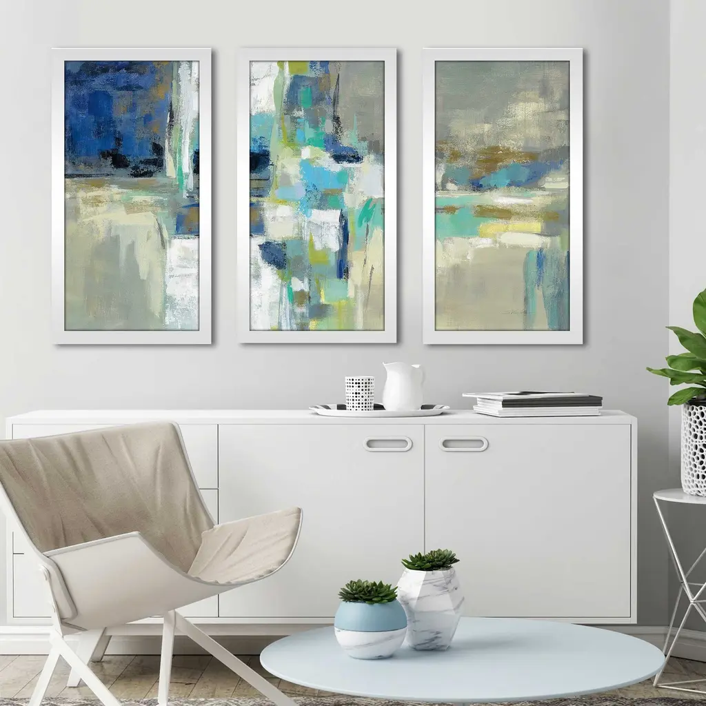 Inspire a serene setting with this abstract wall art by Carol Benson-Cobb. Its soft, layered tones evoke a sense of calm reflection while adding a quiet depth to your wall decor. We love this triptych layered into a tailored space where its understated palette can blend with other elements in the room.
