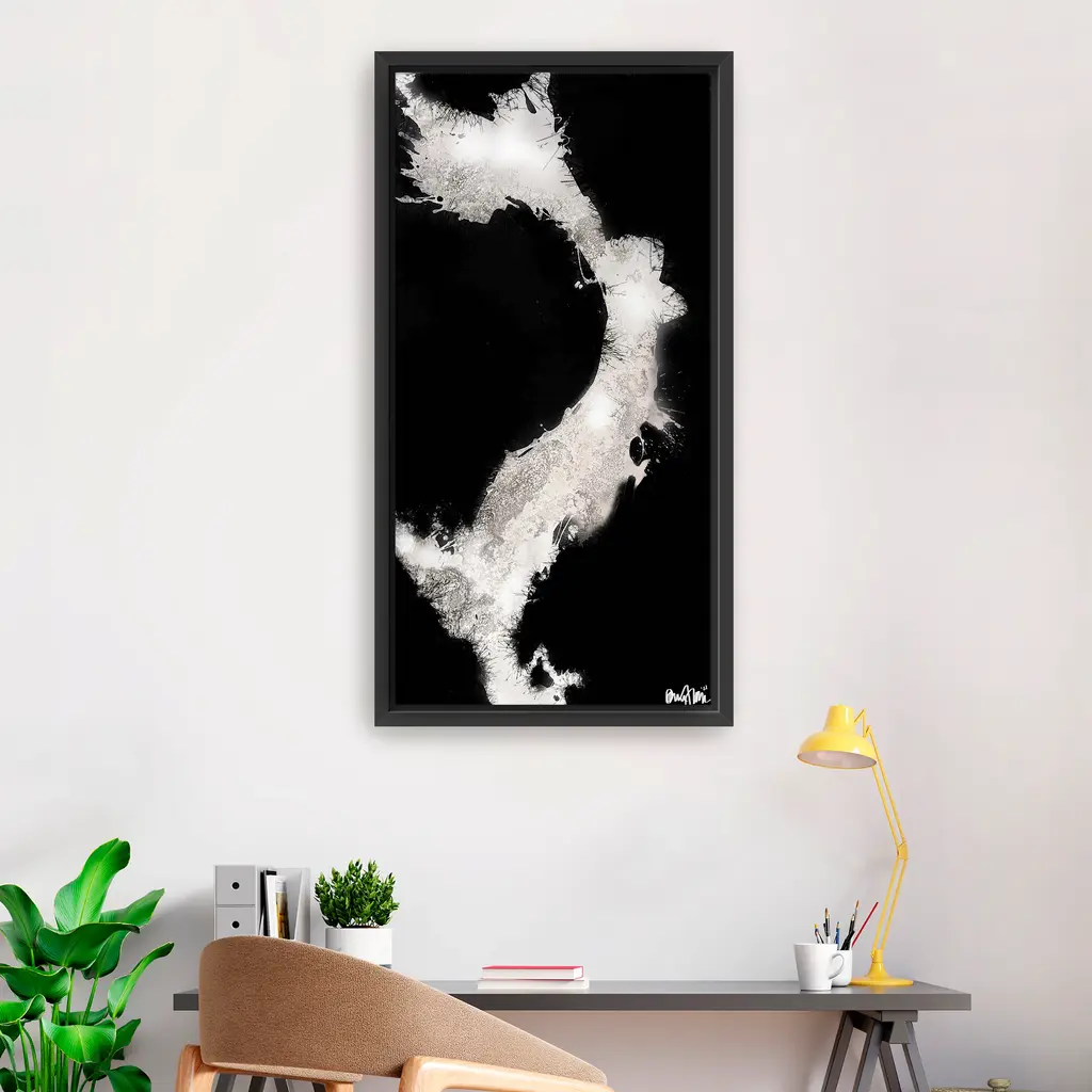 A sweeping, textured white form rises boldly against a deep black backdrop, creating a stunning contrast full of energy and movement. This modern abstract piece captivates with its dynamic flow and minimalist elegance. Our Gallery Wrap Canvas Prints are proudly assembled with high quality materials in California, USA. Each piece is printed on a thick, archival grade canvas using Giclee technology. It is then hand-stretched by our experienced artisans over solid wood bars, which will not warp over time. The final product is a piece personally crafted for you to confidently display on your wall. Care and Assembly: Ensure that the location of your piece has little to no exposure to heat, sunlight, and moisture. Wipe clean, only if needed. Each piece includes hanging hardware to hang on your wall vertically.