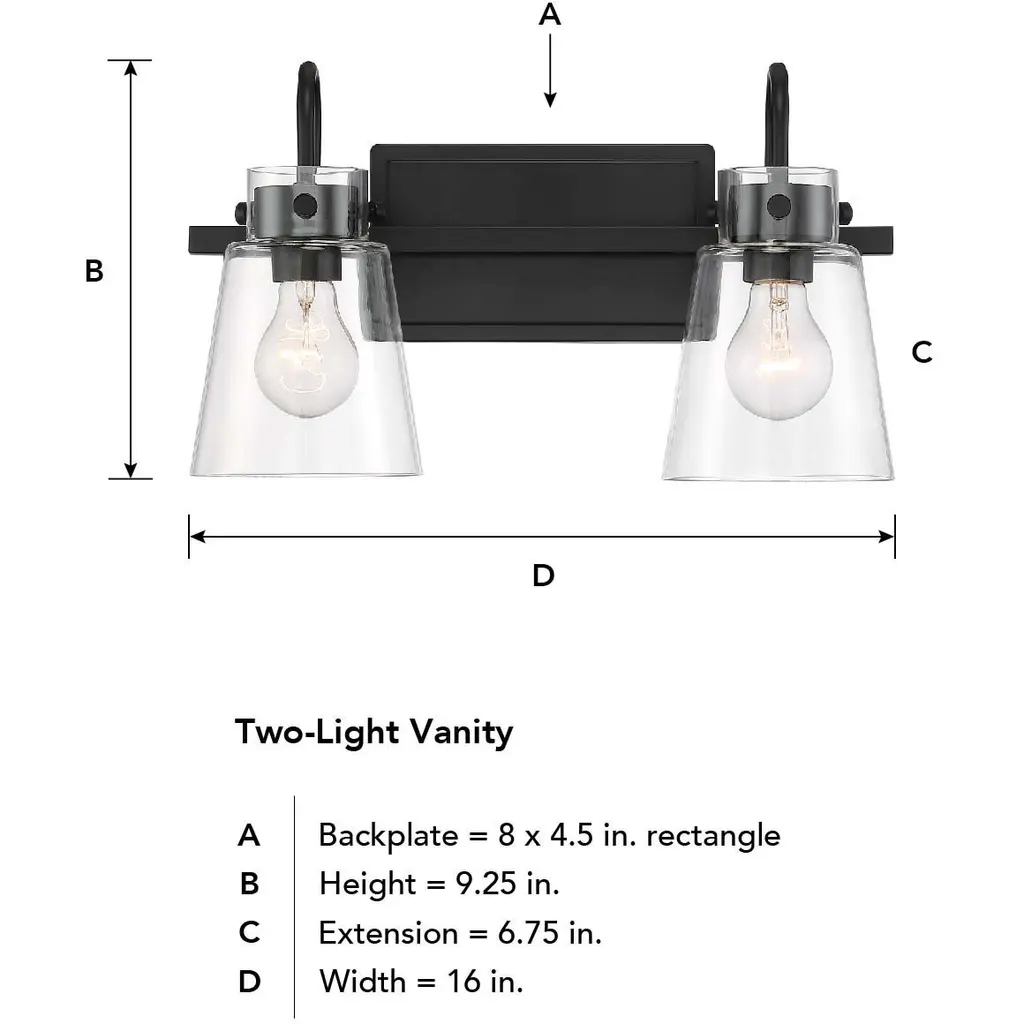 Inwood 2 Light 16 Inch Matte Black Vanity Light Wall Light