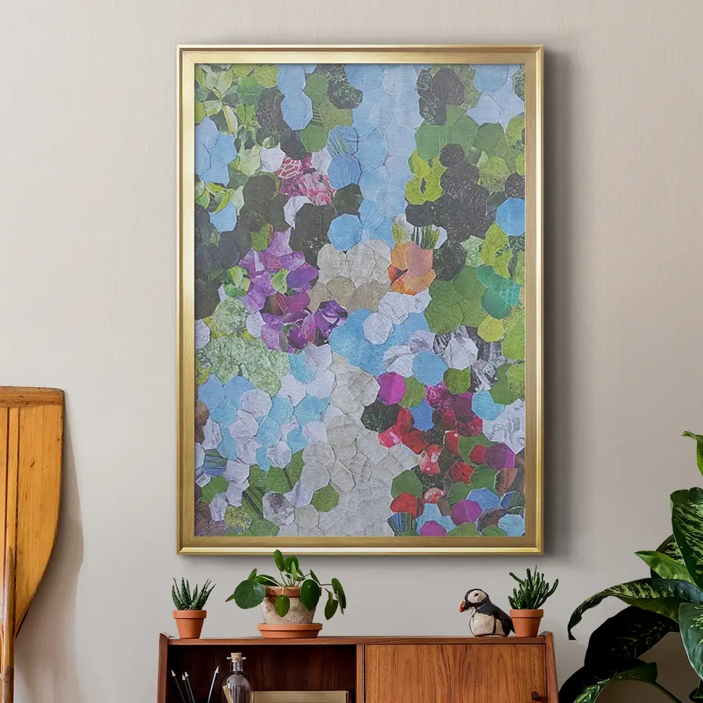 Iris Garden Premium Framed Print - Ready to Hang A Premium Framed Print created to last. Framed in distressed wood and available in an array of sizes and colors Featuring a beveled a solid wood stretcher bar, each piece comes ready to hand 4 SIZES AVAILABLE 30.5''X42.5'' - Overall Size 26.5'X36.5'' - Overall Size 22.5''x30.5'' - Overall Size 18.5''x24.5'' - Overall Size Each piece is made to order. Each piece comes with hanging hardware. Made in the USA Ready to Hang