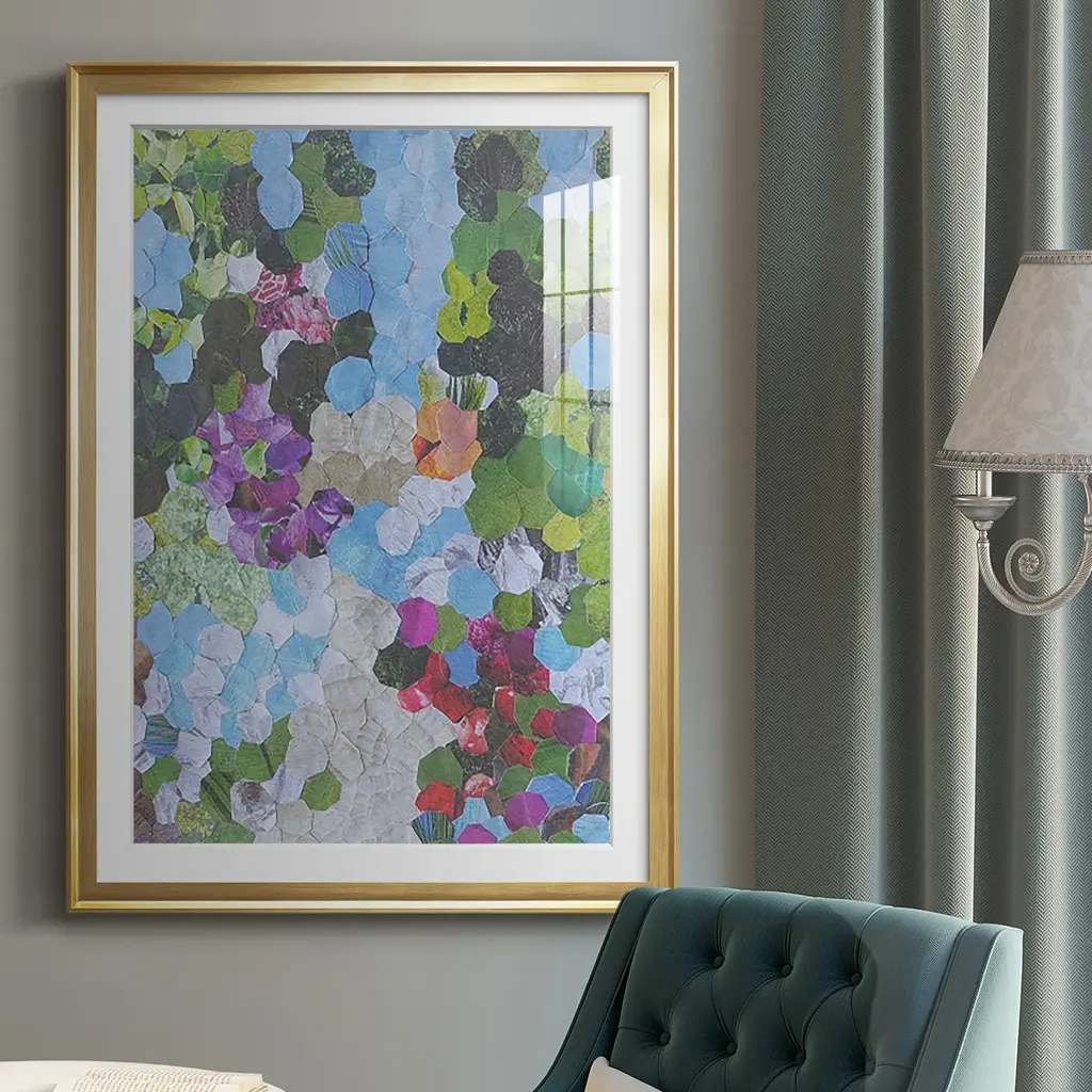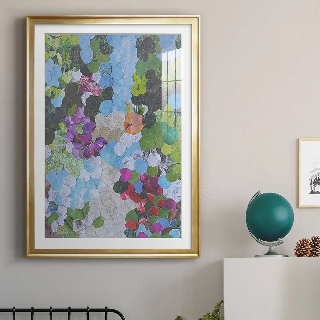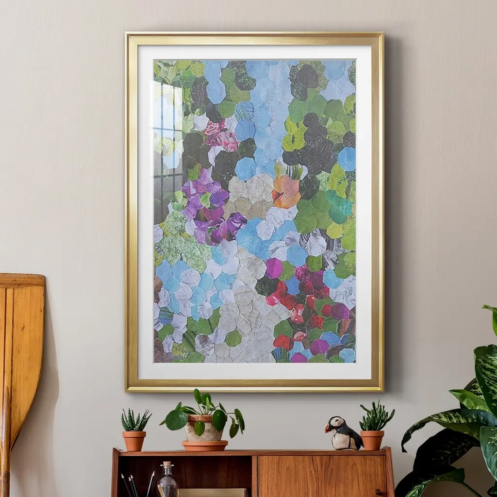 Iris Garden Premium Framed Print - Ready to Hang A Premium Framed Print created to last. Framed in distressed wood and available in an array of sizes and colors Featuring a beveled a solid wood stretcher bar, each piece comes ready to hand 4 SIZES AVAILABLE 30.5''X42.5'' - Overall Size 26.5'X36.5'' - Overall Size 22.5''x30.5'' - Overall Size 18.5''x24.5'' - Overall Size Each piece is made to order. Each piece comes with hanging hardware. Made in the USA Ready to Hang Giclee Paper Print Acrylic Glass Beveled Matt Board