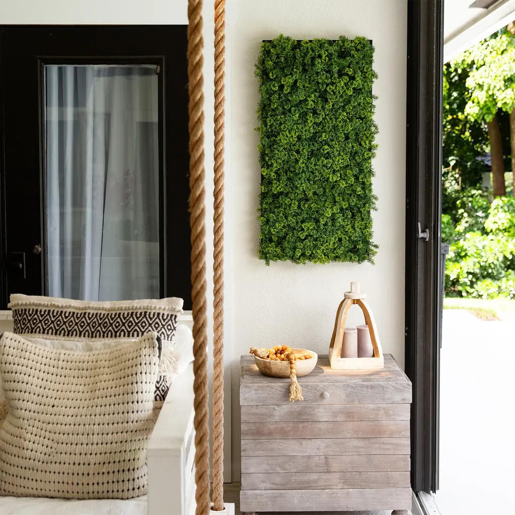 Create a serene meadow vibe with the UV-resistant Irish green meadow artificial living wall panel, framed in sleek black aluminum for an artistic touch. Inspired by world-class restaurant decor, it blends lush greens with soft hues for striking contrast. Effortlessly bring the beauty of nature indoors—without the upkeep. Easy to hang and perfect for renters or homeowners, this stunning piece transforms any space into a tranquil retreat, inside or out. Product Features: Irish meadow rectangular artificial living wall panel Lifelike green leaves accented by softer hues UV-resistant Comes with a black aluminum frame For both indoor and outdoor use Dimensions: 40"H x 20"W x 3"D Material(s): plastic