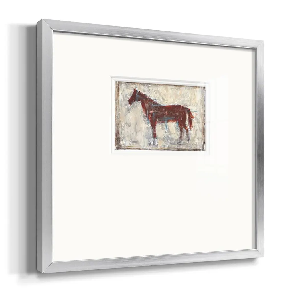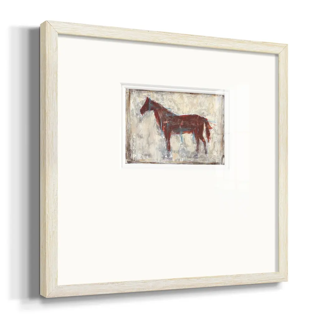 Iron Equine IPremium Framed Print A framed cold pressed paper print featuring superior double matting and quality frame. 2 SIZES AVAILABLE 16''X16''' - Overall Size 20''X20''' - Overall Size Each piece is made to order. Each piece comes with hanging hardware. Made in the USA Ready to Hang Giclee Paper Print Plexiglass Beveled Matt Board Double Matte Board