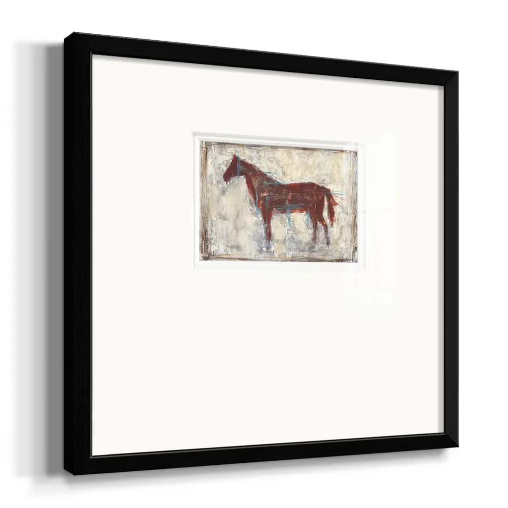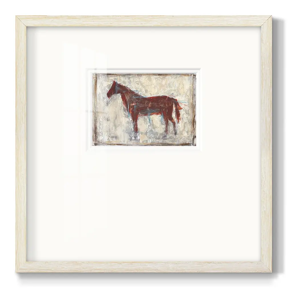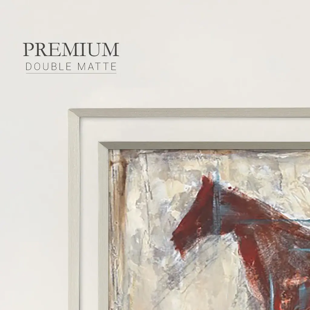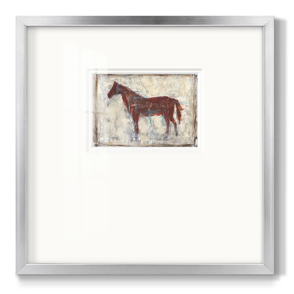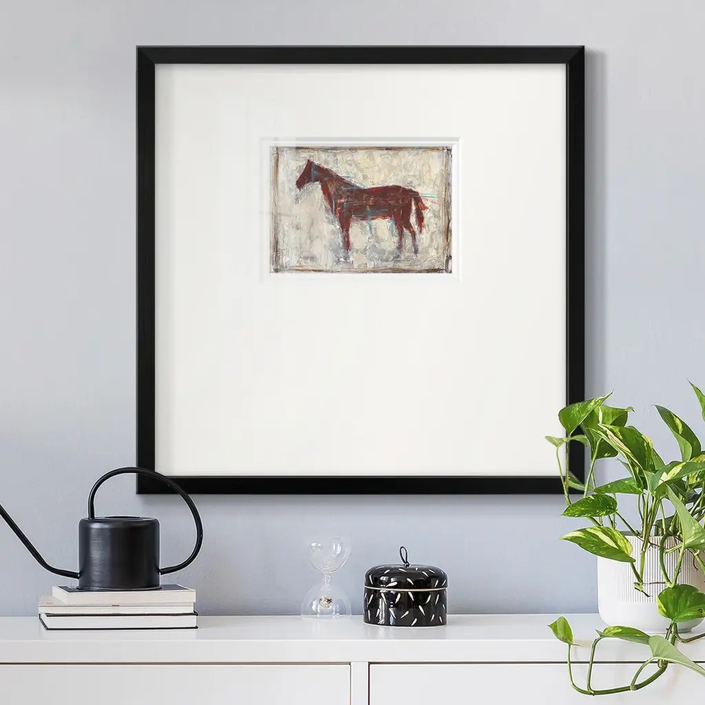 Iron Equine IPremium Framed Print A framed cold pressed paper print featuring superior double matting and quality frame. 2 SIZES AVAILABLE 16''X16''' - Overall Size 20''X20''' - Overall Size Each piece is made to order. Each piece comes with hanging hardware. Made in the USA Ready to Hang Giclee Paper Print Plexiglass Beveled Matt Board Double Matte Board