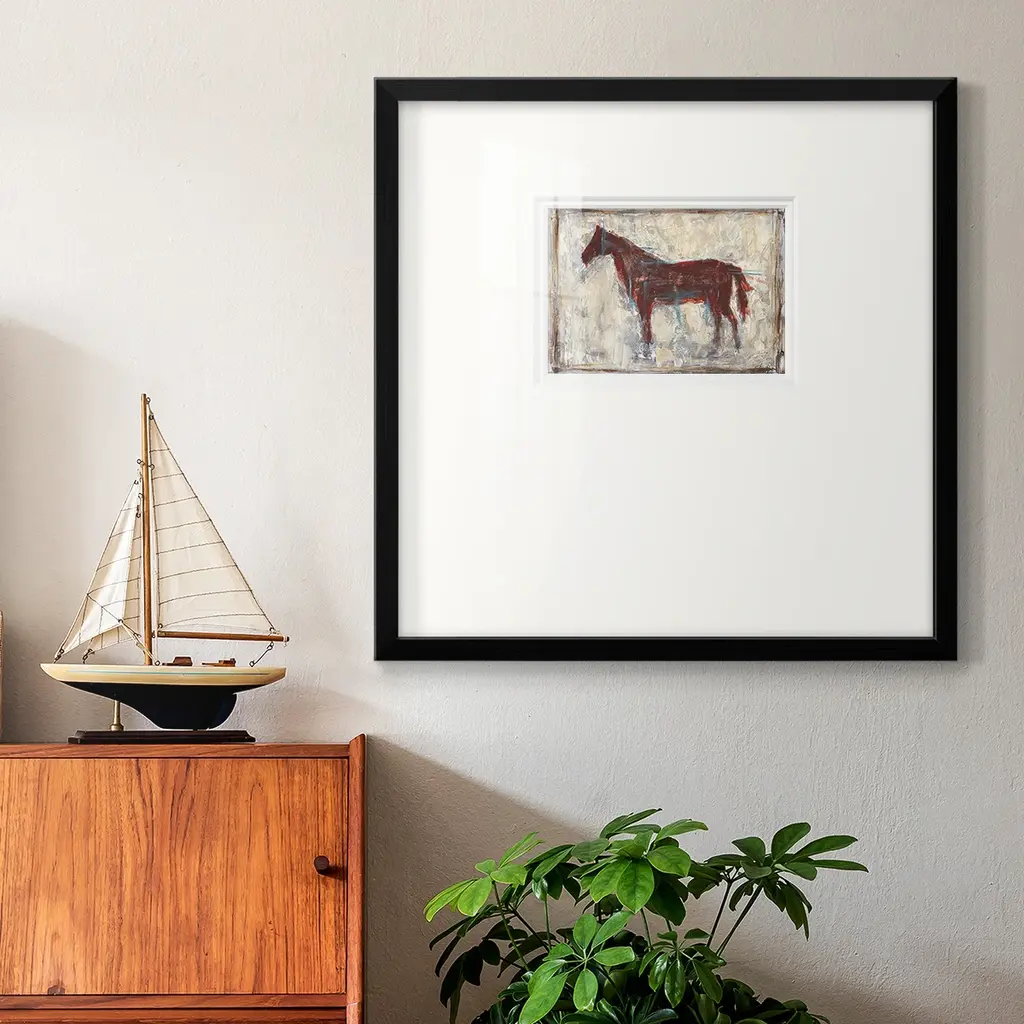 Iron Equine IPremium Framed Print A framed cold pressed paper print featuring superior double matting and quality frame. 2 SIZES AVAILABLE 16''X16''' - Overall Size 20''X20''' - Overall Size Each piece is made to order. Each piece comes with hanging hardware. Made in the USA Ready to Hang Giclee Paper Print Plexiglass Beveled Matt Board Double Matte Board