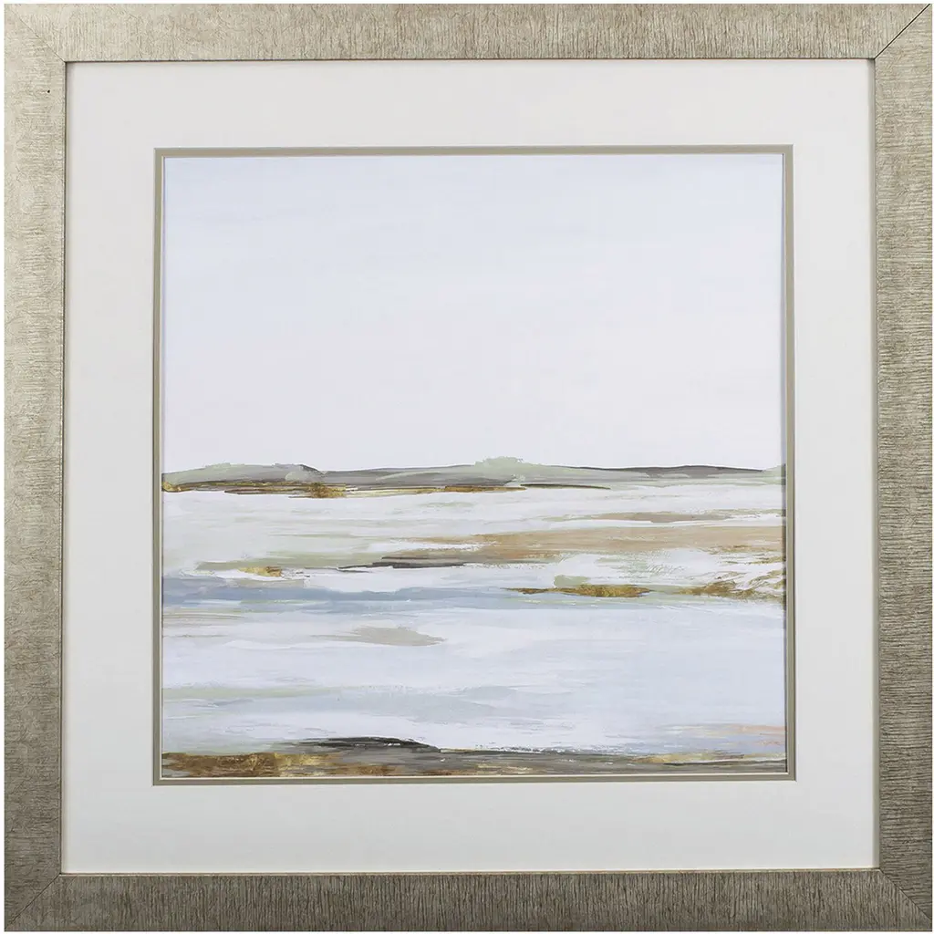Alto II by Isabelle Z is a high quality piece of framed artwork. The finished size of this piece is 22" X 22". It has a Classic Champagne Silver with Ornate Inner Edge frame, is single matted and finished with high quality Acrylic Plexiglass.