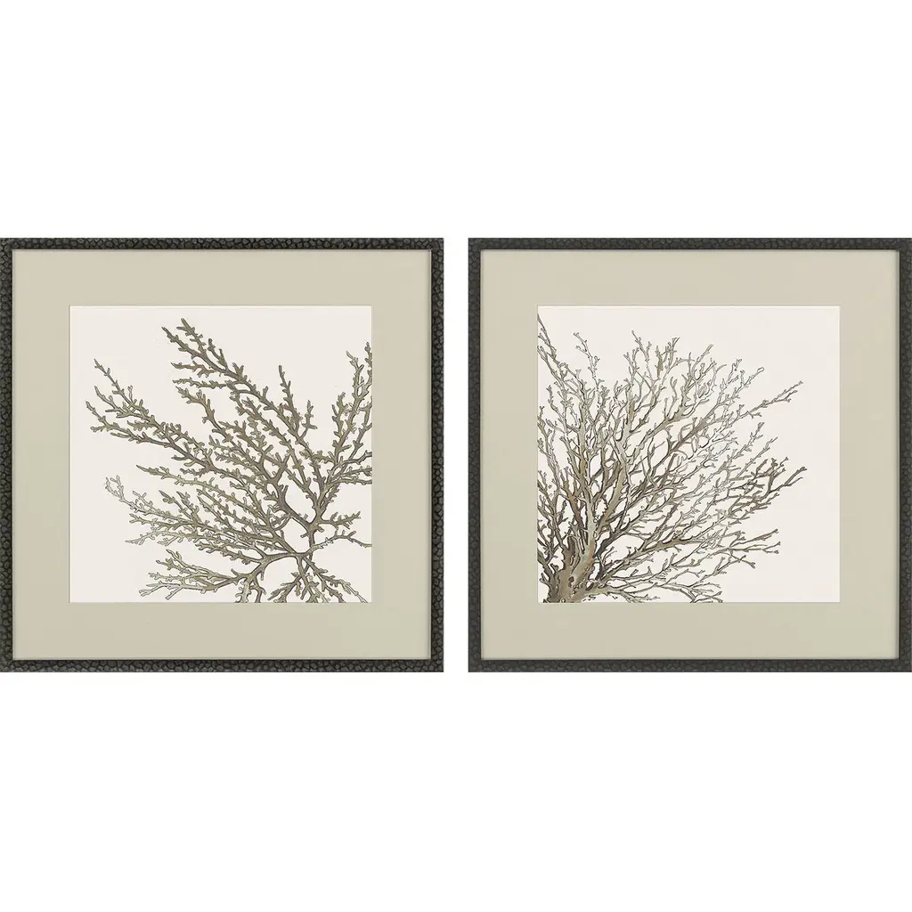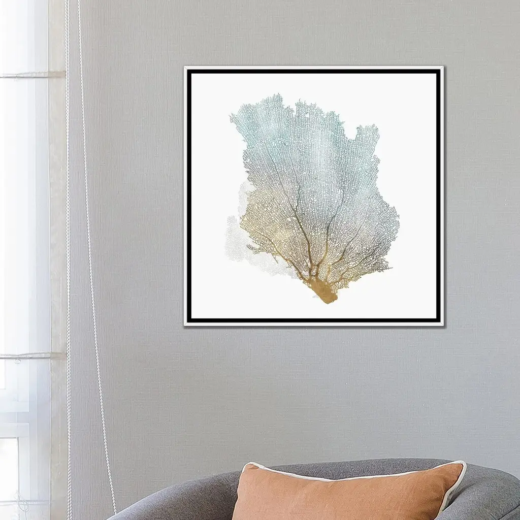 Delicate Coral II by Isabelle Z is a high quality piece of framed artwork. The finished size of this piece is 22" X 22". It has a Classic Champagne Silver with Ornate Inner Edge frame, is single matted and finished with high quality Acrylic Plexiglass.