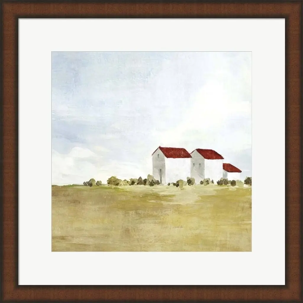 Red Farm House II by Isabelle Z is a high quality piece of framed artwork. The finished size of this piece is 20.75" X 20.75". It has a Slim Teak with Espresso Brown Edges frame, is single matted and finished with high quality Acrylic Plexiglass.