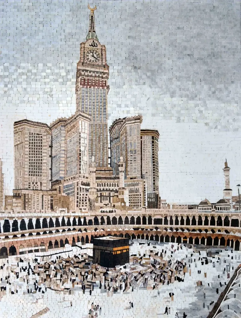 Introducing our exquisite Islamic Mosaic - Mecca, a stunning handcrafted masterpiece that captures the essence and beauty of Islamic art. This mesmerizing marble mosaic is meticulously crafted from all-natural stones and hand-cut tiles, ensuring each piece is unique and of premium quality. The intricate design offers a detailed representation of Mecca, the holiest city in Islam and the birthplace of the Prophet Muhammad. Revered as the site of the Kaaba, Mecca holds profound spiritual significance for Muslims worldwide, drawing millions of pilgrims annually to perform Hajj. With this luxury stone artwork, you can bring a radiant piece of this sacred heritage into your home. The mosaic's vibrant colors and complex patterns celebrate Islamic culture while showcasing the skilled craftsmanship behind each creation. Among the natural stones, the luminous brown quartz stands out with its crystalline, jewel-like shimmer and prismatic translucence, adding a warm, scintillating depth that enhances the mosaic’s captivating texture. This rich brown quartz exudes an elegant, earthy radiance that beautifully complements the mosaic’s spiritual symbolism. Whether displayed in your living room, office, or prayer area, this exotic natural stone mosaic serves as a daily reminder of faith, beauty, and devotion. More than a decorative item, the Islamic Mosaic - Mecca is a statement of appreciation for art and spirituality, making it a thoughtful gift for loved ones or pilgrims preparing for their journey. Transform your space with this silky, cool-to-the-touch marble artwork. Embrace the timeless beauty of Islamic tradition and let the light of Mecca illuminate your environment. Order your handcrafted Islamic Mosaic - Mecca today and own a piece of art that enriches both your surroundings and spiritual journey.