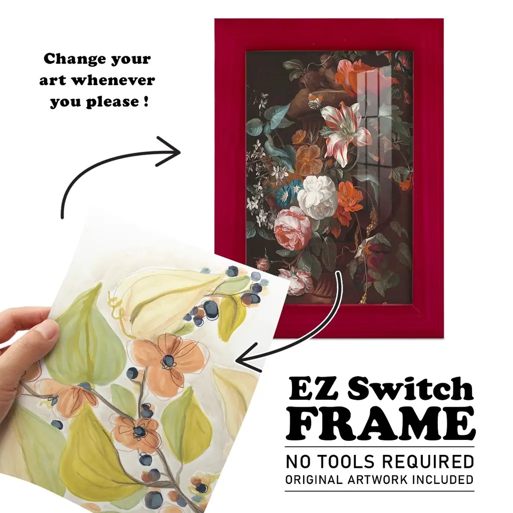 Island Branch I -EZ SWITCH Framed Print w/glass-Cherry Red A delightful, framed print. Featuring a solid wood frame with real wood glass. This premium print is giclee quality. In addition, every frame features a removable back and table top stand. This allows you to change your art in the future or to just stand the art on a table for a new look. We are sure you'll enjoy our new series of EZ SWITCH Framed Art. Solid Wood Frame Real Glass Removable / Replaceable Art Built in Tabletop Stand Sizes range from 4x6 up to 12x15 - buy just one or pair them up as sets as you see fit.