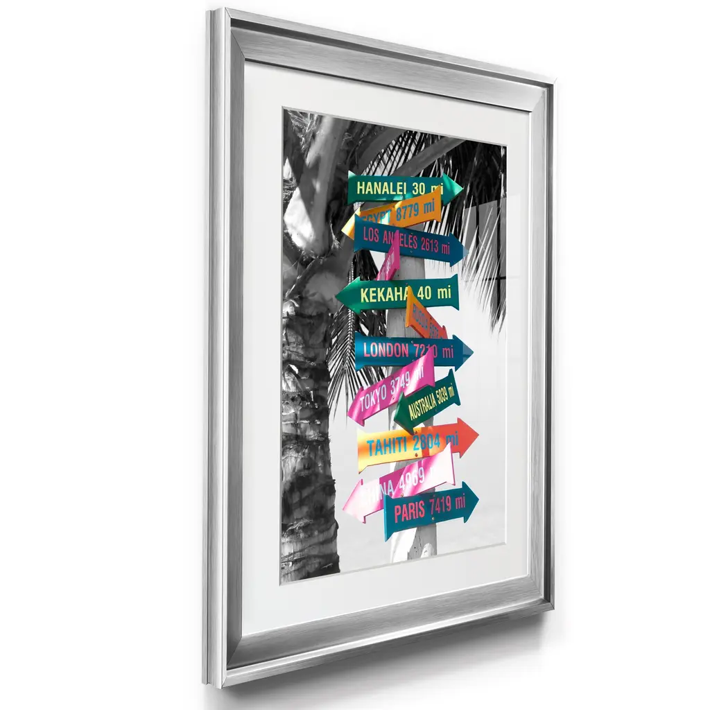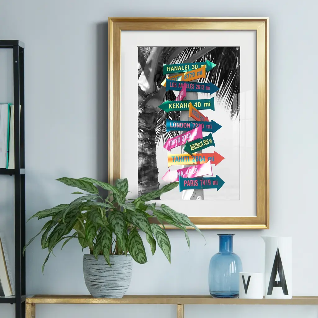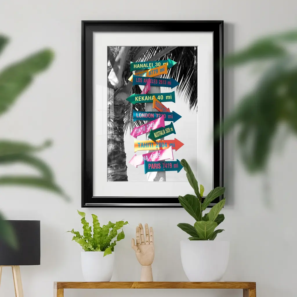 Island Directional Premium Framed Print - Ready to Hang A Premium Framed Print created to last. Framed in distressed wood and available in an array of sizes and colors Featuring a beveled a solid wood stretcher bar, each piece comes ready to hand 4 SIZES AVAILABLE 30.5''X42.5'' - Overall Size 26.5'X36.5'' - Overall Size 22''x30'' - Overall Size 18''x24'' - Overall Size Each piece is made to order. Each piece comes with hanging hardware. Made in the USA Ready to Hang Giclee Paper Print Acrylic Glass Beveled Matt Board