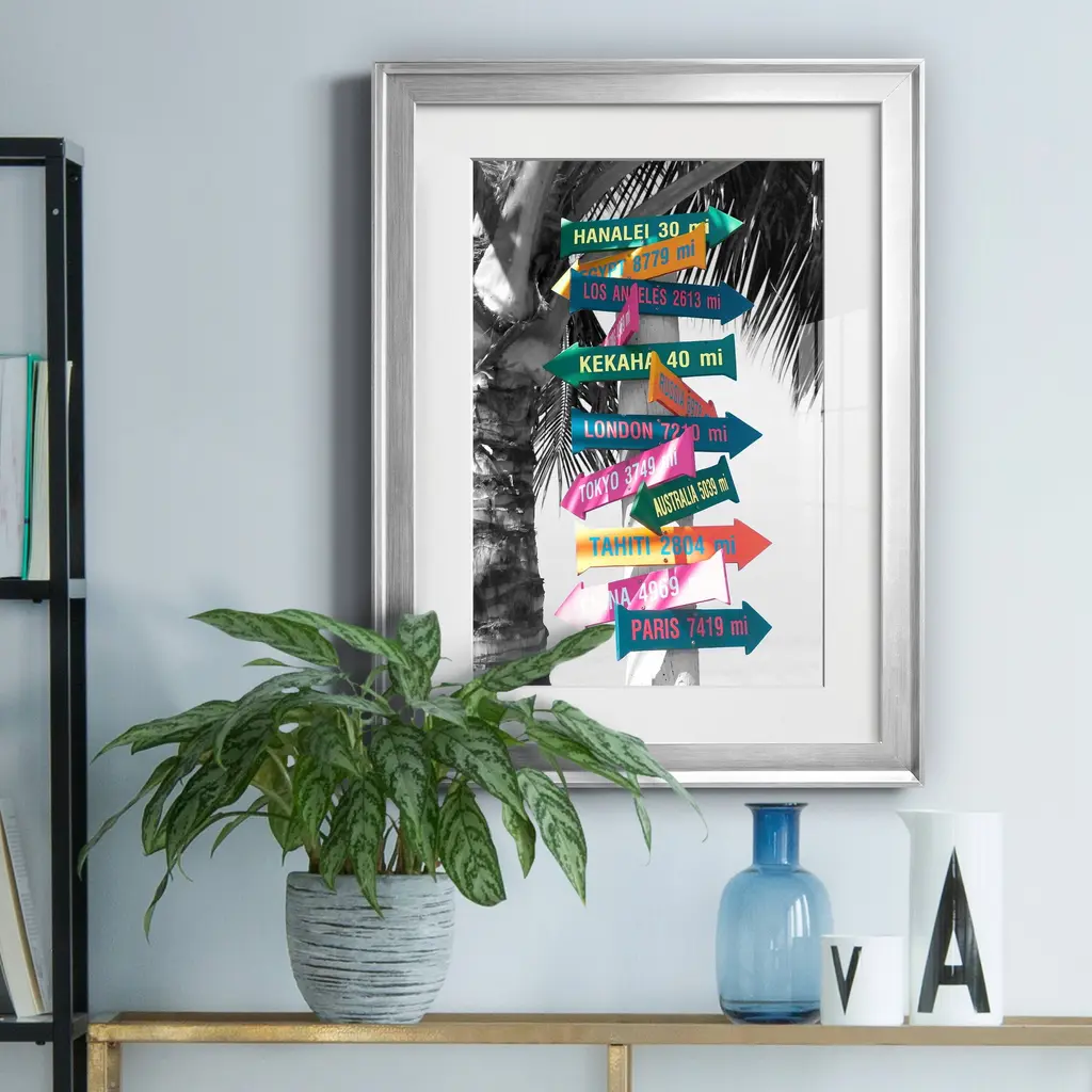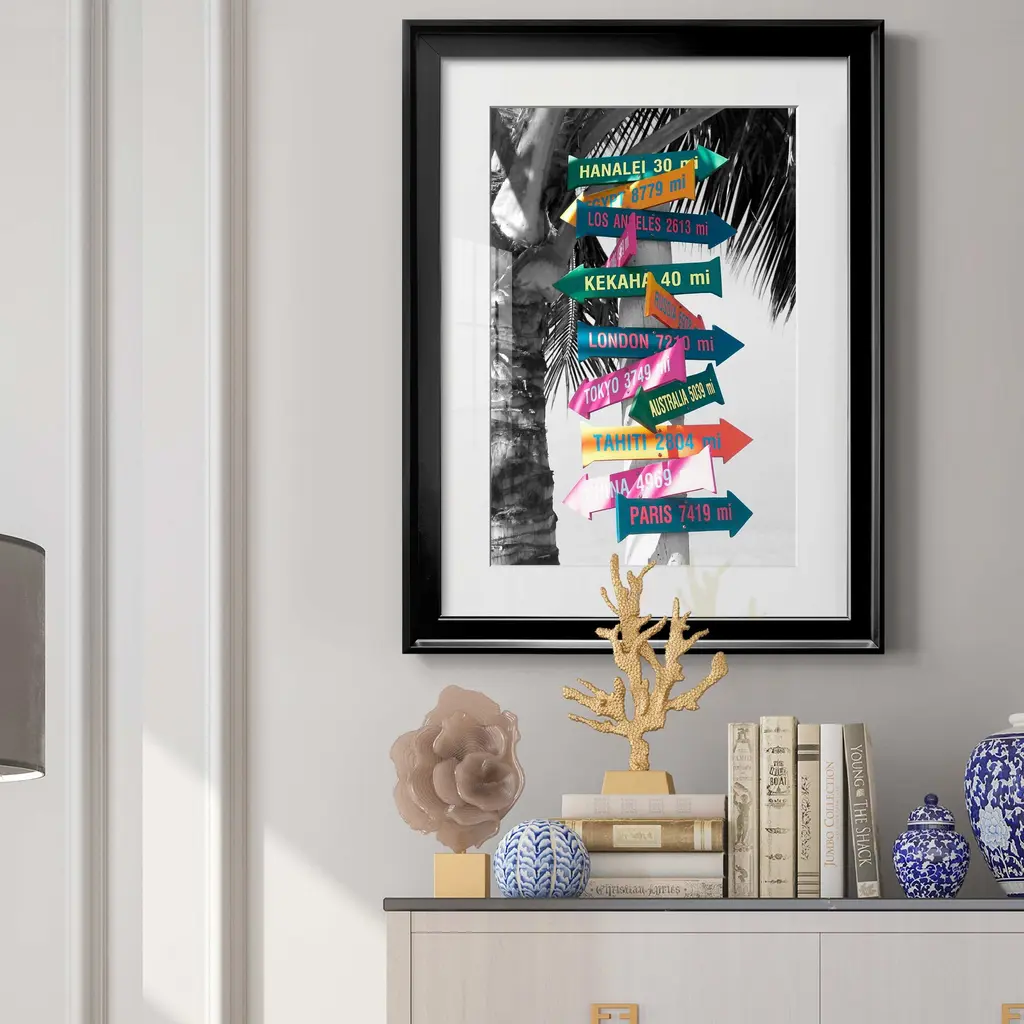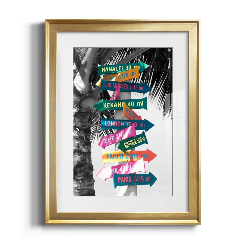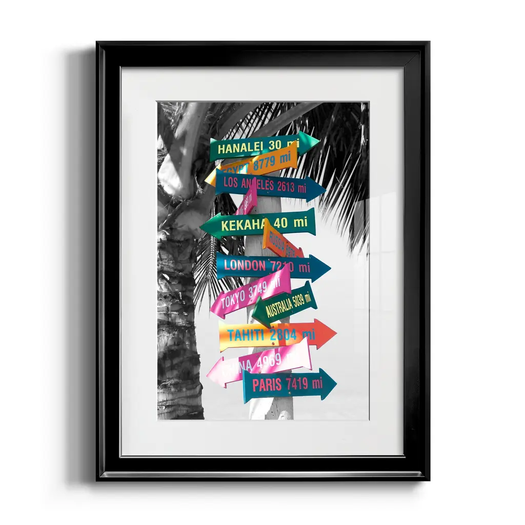 Island Directional Premium Framed Print - Ready to Hang A Premium Framed Print created to last. Framed in distressed wood and available in an array of sizes and colors Featuring a beveled a solid wood stretcher bar, each piece comes ready to hand 4 SIZES AVAILABLE 30.5''X42.5'' - Overall Size 26.5'X36.5'' - Overall Size 22''x30'' - Overall Size 18''x24'' - Overall Size Each piece is made to order. Each piece comes with hanging hardware. Made in the USA Ready to Hang Giclee Paper Print Acrylic Glass Beveled Matt Board