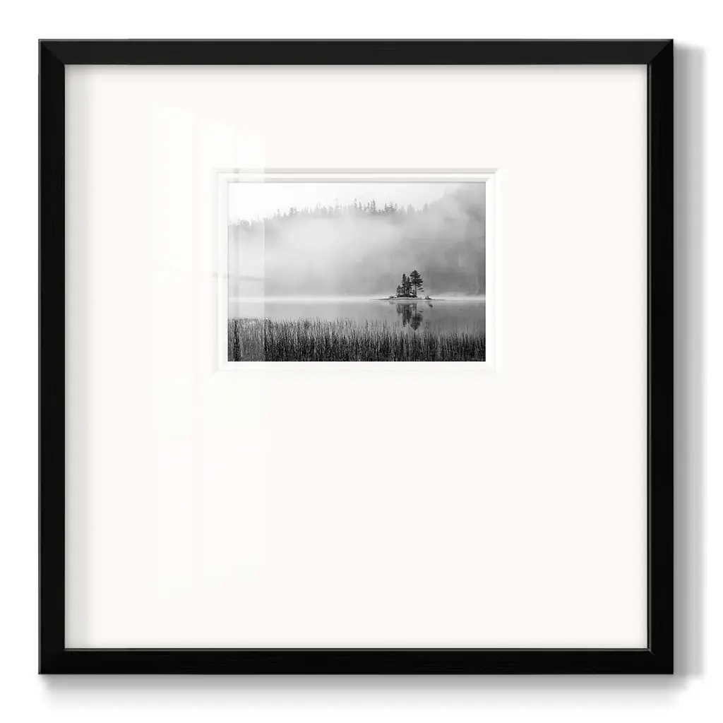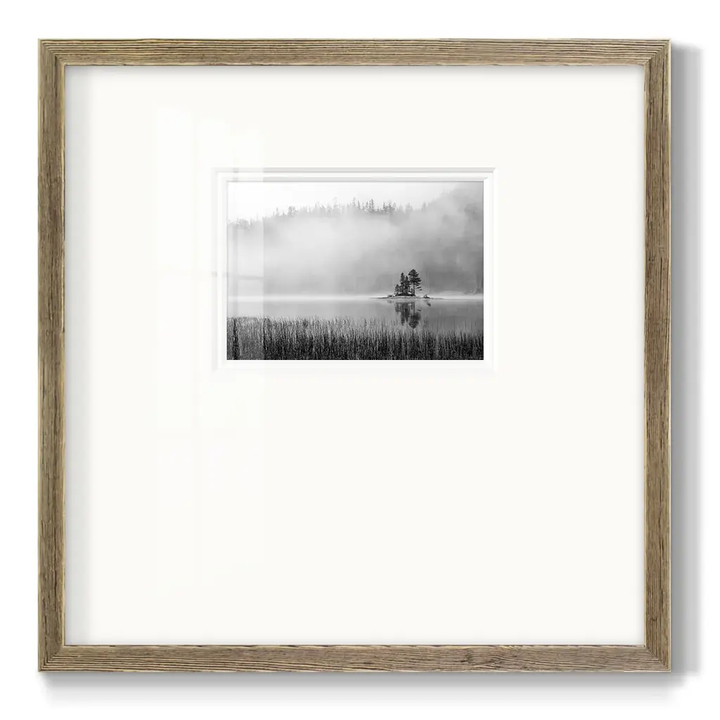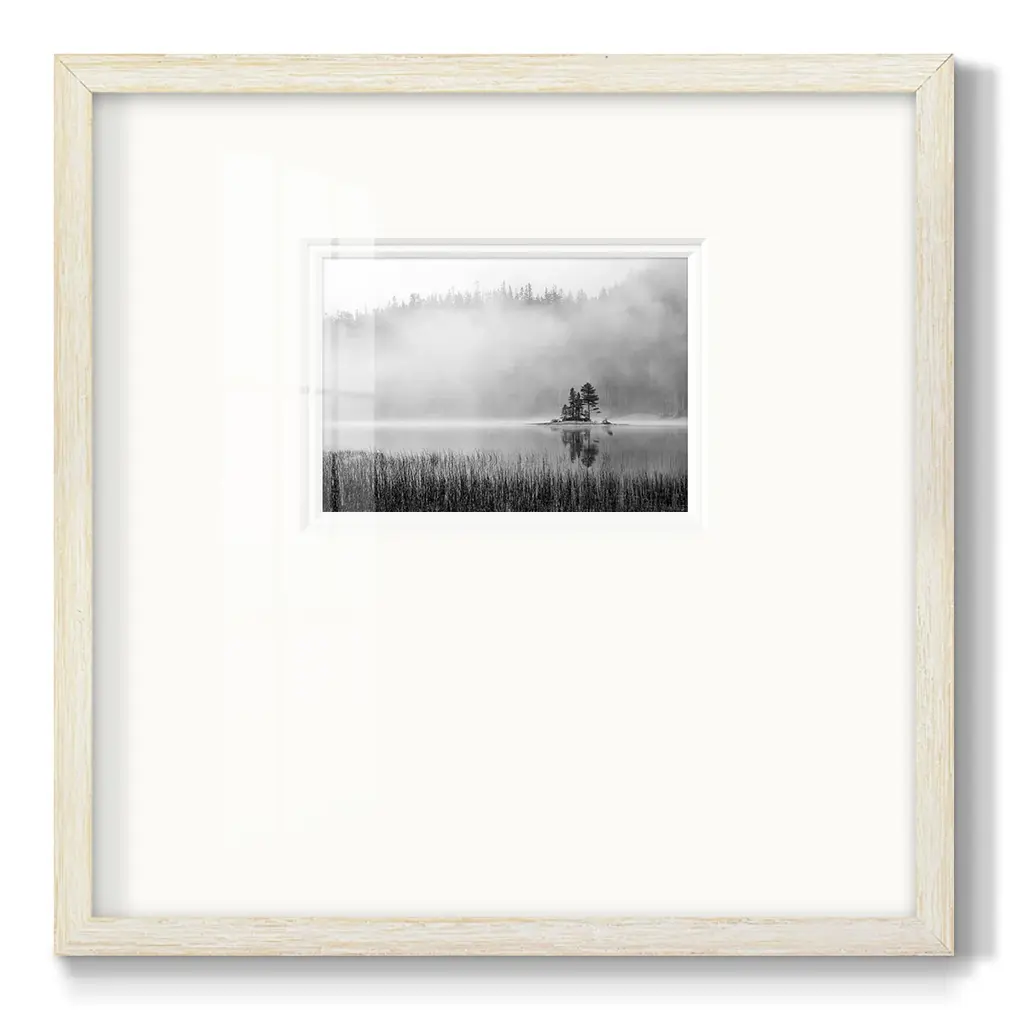 Island FogPremium Framed Print A framed cold pressed paper print featuring superior double matting and quality frame. 2 SIZES AVAILABLE 16''X16''' - Overall Size 20''X20''' - Overall Size Each piece is made to order. Each piece comes with hanging hardware. Made in the USA Ready to Hang Giclee Paper Print Plexiglass Beveled Matt Board Double Matte Board