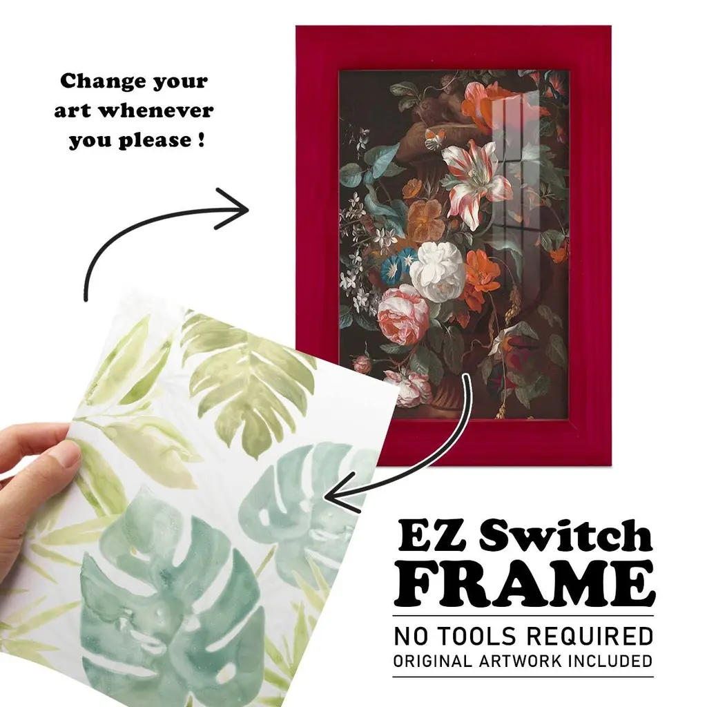 Island Medley III -EZ SWITCH Framed Print w/glass-Cherry Red A delightful, framed print. Featuring a solid wood frame with real wood glass. This premium print is giclee quality. In addition, every frame features a removable back and table top stand. This allows you to change your art in the future or to just stand the art on a table for a new look. We are sure you'll enjoy our new series of EZ SWITCH Framed Art. Solid Wood Frame Real Glass Removable / Replaceable Art Built in Tabletop Stand Sizes range from 4x6 up to 12x15 - buy just one or pair them up as sets as you see fit.