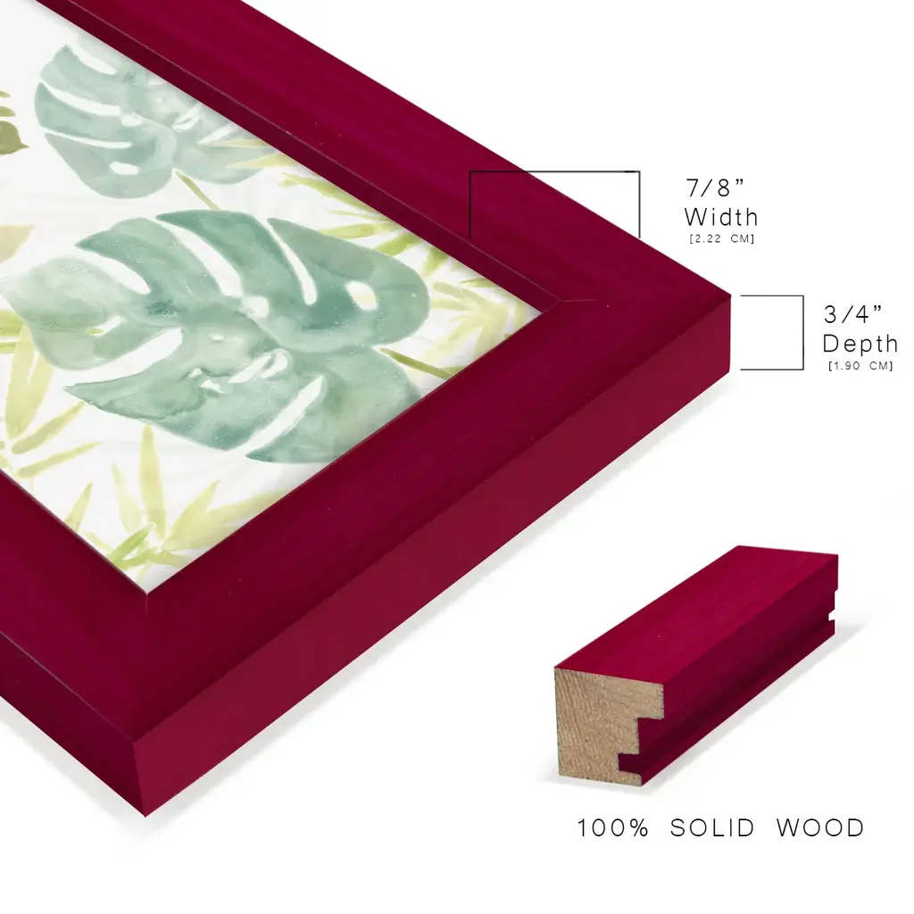 Island Medley III -EZ SWITCH Framed Print w/glass-Cherry Red A delightful, framed print. Featuring a solid wood frame with real wood glass. This premium print is giclee quality. In addition, every frame features a removable back and table top stand. This allows you to change your art in the future or to just stand the art on a table for a new look. We are sure you'll enjoy our new series of EZ SWITCH Framed Art. Solid Wood Frame Real Glass Removable / Replaceable Art Built in Tabletop Stand Sizes range from 4x6 up to 12x15 - buy just one or pair them up as sets as you see fit.