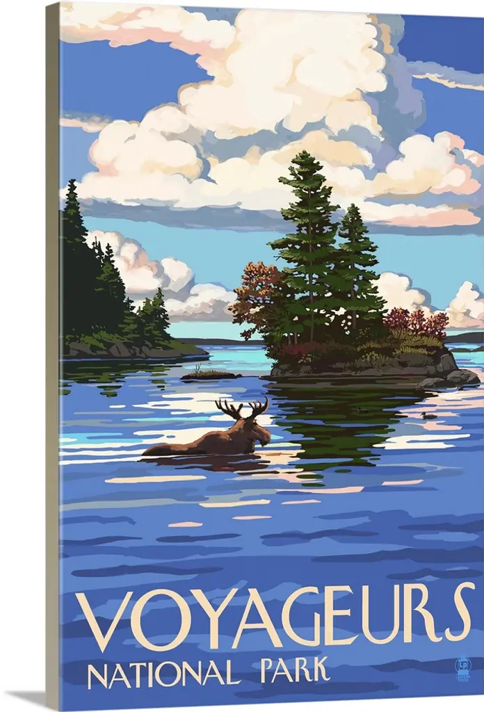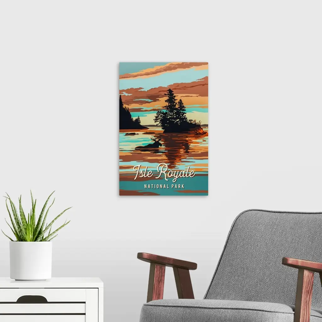 Isle Royale National Park, Moose Swimming: Graphic Travel Poster wall art for home and office decor. Discover canvas art prints, photos, mural, big canvas art and framed wall art in GreatBigCanvas.com's varied collections.