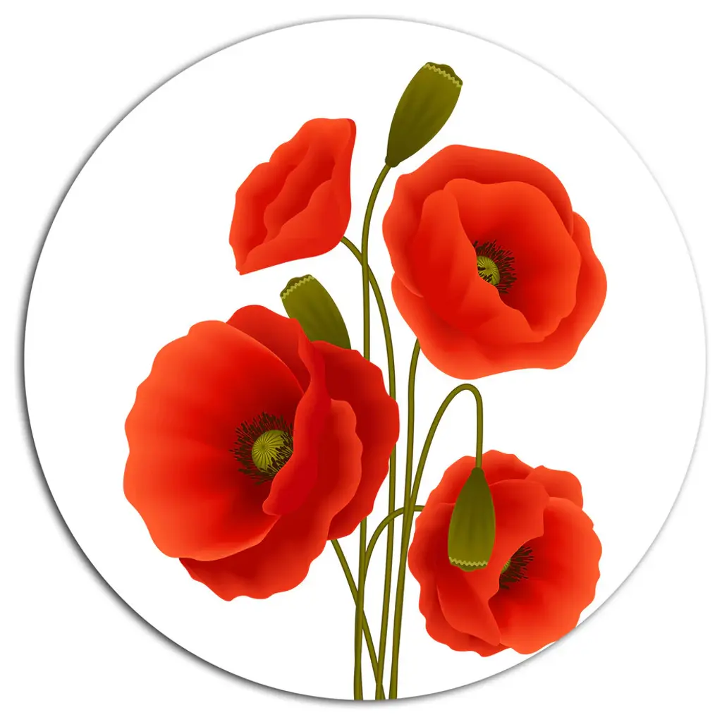 Bring Contemporary Abstraction to your home with this large Circle Metal wall art. This Isolated Red Poppy Flowers Metal Artwork makes it the focal point of any room or office. - White Gloss Coating ensures colors are extra vibrant with light reflection.- Aluminum grade Sheet Metal with 1 inch mounting frame on the back giving the illusion that the artwork is floating on the wall..- Mounting Brackets are included along with instructions.- High Quality Digital images are created directly into a glossy aluminum panel producing a stunning and captivating print into the glossy finish of the metal.- Water, Fire and Scratch resistant HD Aluminum panels.- Looks better than any photo paper and guaranteed to last at least 20 years- Easy to clean with a microfiber cloth. Colors are far superior to regular Canvas Art. - Easy to Hang