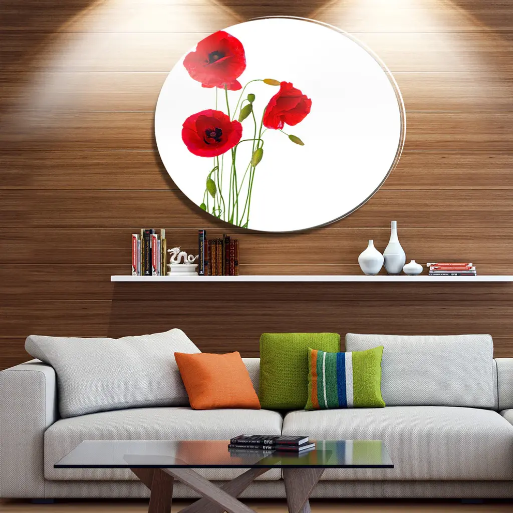 Isolated Red Poppy Flowers, Modern Floral Round Metal Wall Art, 23"