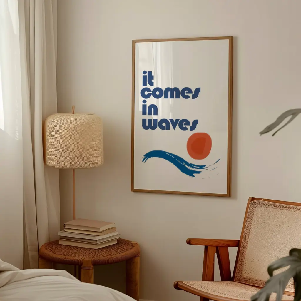 It comes in waves retro inspired abstract art print. Sold without frameGiclée printed on Munken pure smooth cream paper which is certified by the Rainforest Alliance Program for FSC® Standards.
