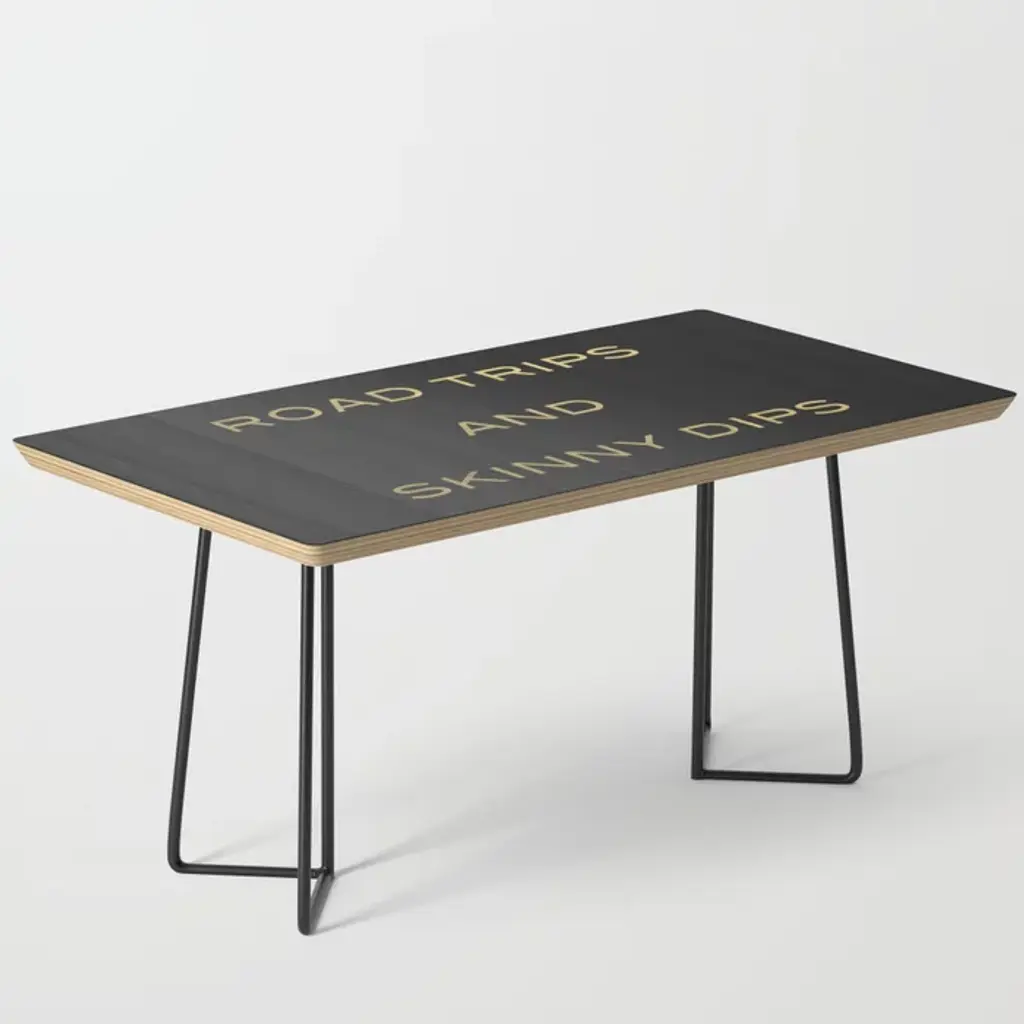35.75" x 17.75" x 17" (H)Baltic birch table top with beveled edgeHigh quality print with satin finishSteel legs available in black or goldAssembly requiredEvery order is made just for youSHIPPING: Items are made to order and typically ship within 3-4 business days. Click here for more information about delivery options.Furniture sales are final. Click here for more information on returns.