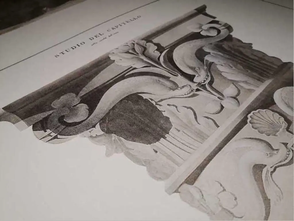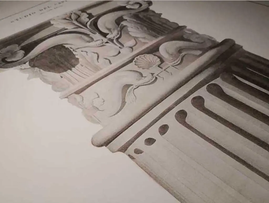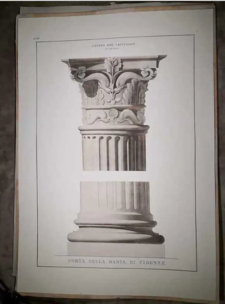 A rare extra-large reproduction print, printed on engraving paper with an antique star press and watercolored by hand representing an antique capital. The capital's from a collection of architectural details of Florence's monuments painted in Italy in the middle of 19th century. These watercolors were commissioned to document the buildings that would be destroyed during the "modernization" of Florence.With an experience of over 40 years, Artecornici design creates high-quality handmade frames using precious woods and working various types of high-quality finishes, lacquers and ageing, offering a vast choice of models.Each print is an artisanal Florentine product, reproducing images of the European 18th and 19th centuries with the same printing techniques (engraving with a star press), the golden age of prints, which are then finished and watercolored exclusively by handThe richness of our work lies in the ability to make our customers' requests our own, creating products with personalized, unique, and precious creations, renewing our collections year after year.