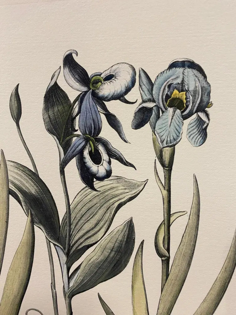 Print from the Collection Botanique Bulbacee representing Iris, enriched with blue colors and nuances of watercolor.Another different Bulbacee flowers prints are available to create a colourful composition.The collection i composed by:- Iris- Crocus and Lilium- Tulipa and Allium- Papaver - Tulipa and Narcissus- Paeonia- Iris and Viola- Paeonia Peregrina- Ornithogalum- Iris Latifoliaprint measure: 48.5 cm x 40.5 cm (Cod 386B)All the prints are completely hand-coloured by our skilled craftsmen in Florence, Italy.Printed manually on 100% cotton engraving paper in Florence Italy.Each print is entirely painted by hand with water colors and tempera.It is a furnishing accessory that enhances the environment and adapts to many decorative styles.Artecornici design produces hand colored art prints, artisan frames, lightings, decorative accessories and furniture. All our products are designed and produced in Florence by Italian master craftsmen.With an experience of over 40 years, Artecornici design creates high-quality handmade frames using precious woods and working various types of high-quality finishes, lacquers and ageing, offering a vast choice of models.Each print is an artisanal Florentine product, reproducing images of the European 18th and 19th centuries with the same printing techniques (engraving with a star press), the golden age of prints, which are then finished and watercoloured exclusively by handThe richness of our work lies in the ability to make our customers' requests our own, creating products with personalized, unique, and precious creations, renewing our collections year after year.