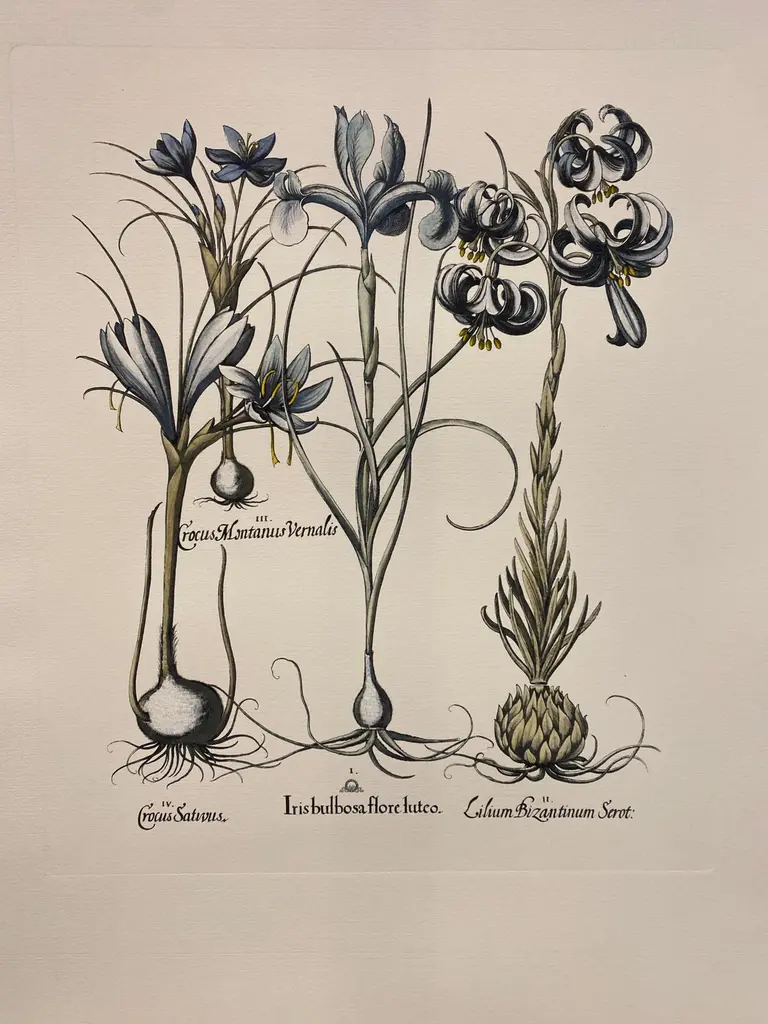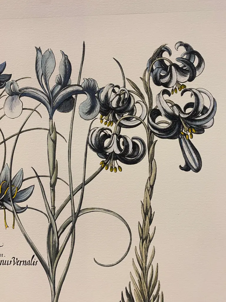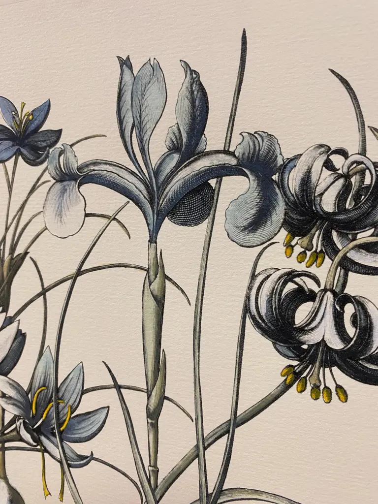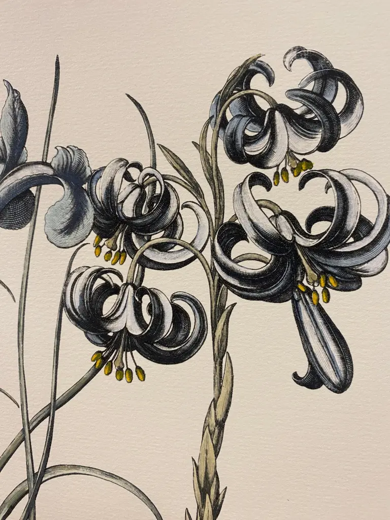 Print from the Collection Botanique Bulbacee representing Tulipa and Lilium, enriched with blue colors and nuances of watercolor.Another different Bulbacee flowers prints are available to create a colourful composition.The collection i composed by:- Iris- Crocus and Lilium- Tulipa and Allium- Papaver - Tulipa and Narcissus- Paeonia- Iris and Viola- Paeonia Peregrina- Ornithogalum- Iris Latifoliaprint measure: 48.5 cm x 40.5 cm (Cod 386B)All the prints are completely hand-coloured by our skilled craftsmen in Florence, Italy.Printed manually on 100% cotton engraving paper in Florence Italy.Each print is entirely painted by hand with water colors and tempera.It is a furnishing accessory that enhances the environment and adapts to many decorative styles.Artecornici design produces hand colored art prints, artisan frames, lightings, decorative accessories and furniture. All our products are designed and produced in Florence by Italian master craftsmen.With an experience of over 40 years, Artecornici design creates high-quality handmade frames using precious woods and working various types of high-quality finishes, lacquers and ageing, offering a vast choice of models.Each print is an artisanal Florentine product, reproducing images of the European 18th and 19th centuries with the same printing techniques (engraving with a star press), the golden age of prints, which are then finished and watercoloured exclusively by handThe richness of our work lies in the ability to make our customers' requests our own, creating products with personalized, unique, and precious creations, renewing our collections year after year.