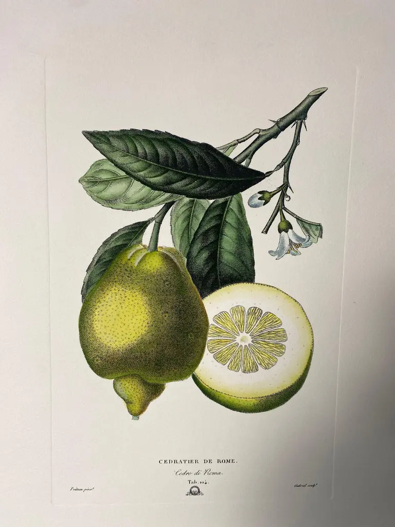 Print from the Collection Botanique Vegetables representing a big Cedar Citrus enriched with green and yellow colors and nuances of watercolor. This print is paired with Lemon Citrus.Another different vegetables and flowers prints are available to create a colourful composition.print measure: 20 cm x 30 cm (Cod 306)All the prints are completely hand-coloured by our skilled craftsmen in Florence, Italy.Printed manually on 100% cotton engraving paper in Florence Italy.Each print is entirely painted by hand with water colors and tempera.It is a furnishing accessory that enhances the environment and adapts to many decorative styles.Artecornici design produces hand colored art prints, artisan frames, lightings, decorative accessories and furniture. All our products are designed and produced in Florence by Italian master craftsmen.With an experience of over 40 years, Artecornici design creates high-quality handmade frames using precious woods and working various types of high-quality finishes, lacquers and ageing, offering a vast choice of models.Each print is an artisanal Florentine product, reproducing images of the European 18th and 19th centuries with the same printing techniques (engraving with a star press), the golden age of prints, which are then finished and watercoloured exclusively by handThe richness of our work lies in the ability to make our customers' requests our own, creating products with personalized, unique, and precious creations, renewing our collections year after year.