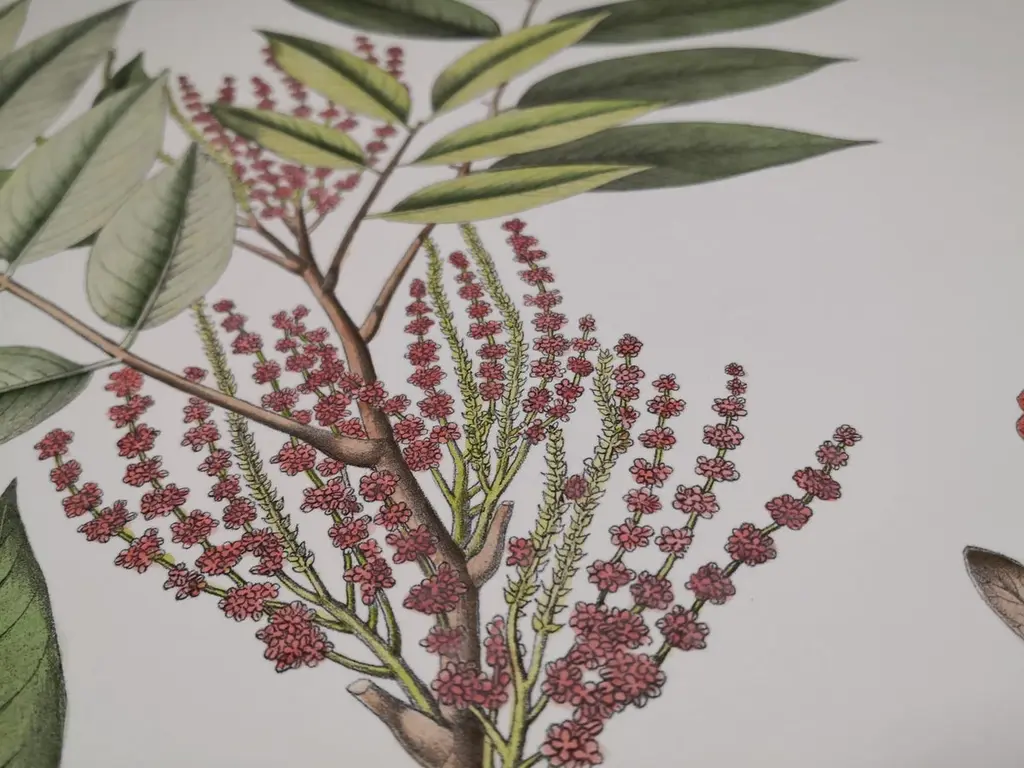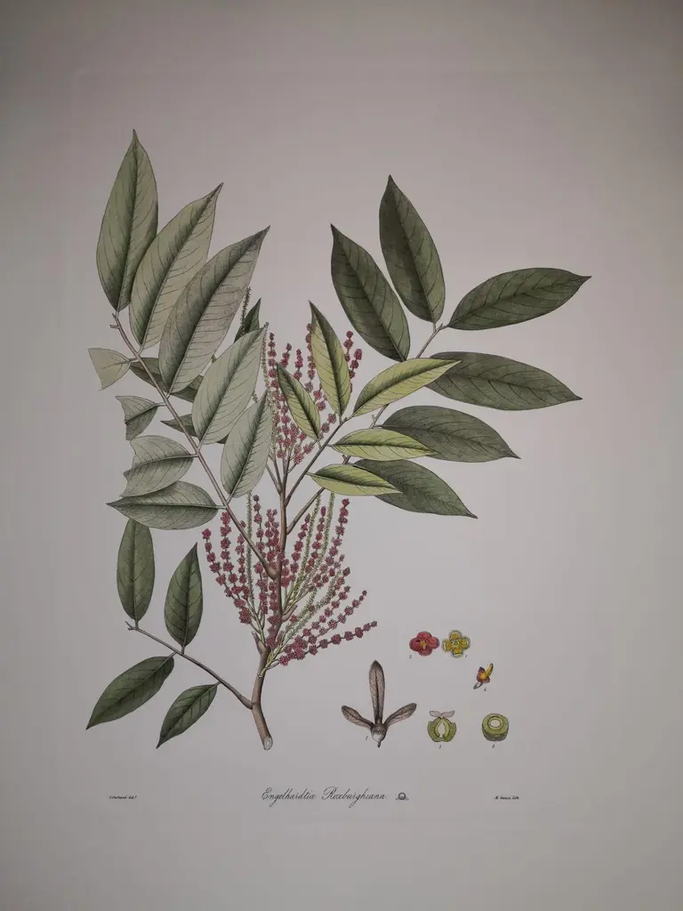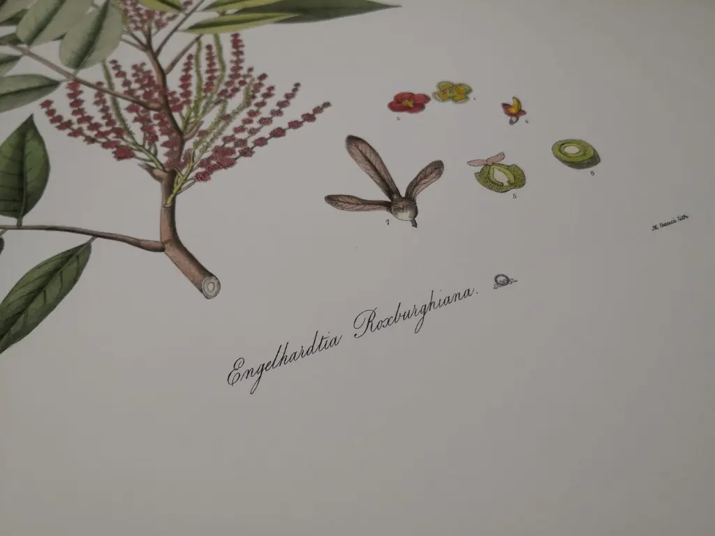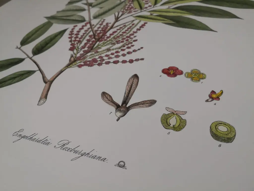 Italian Contemporary Hand Painted Botanical Print Repr Engelhardtia Roxburghiana