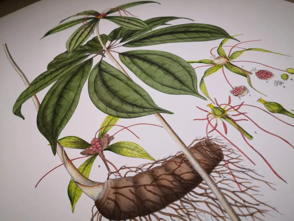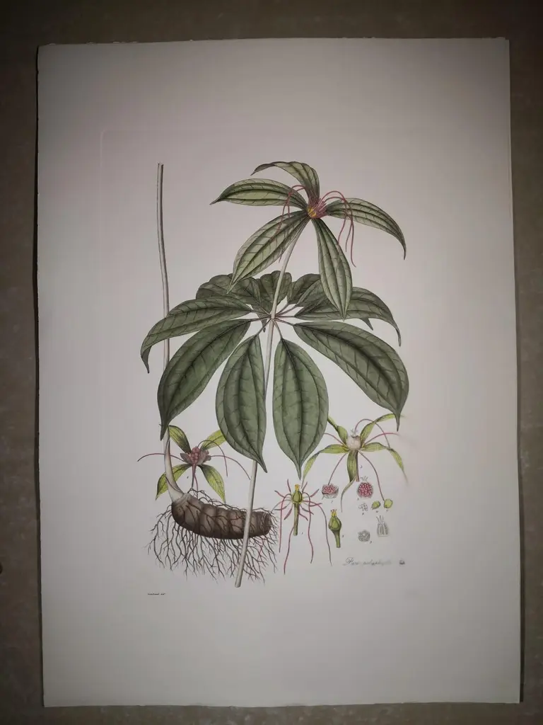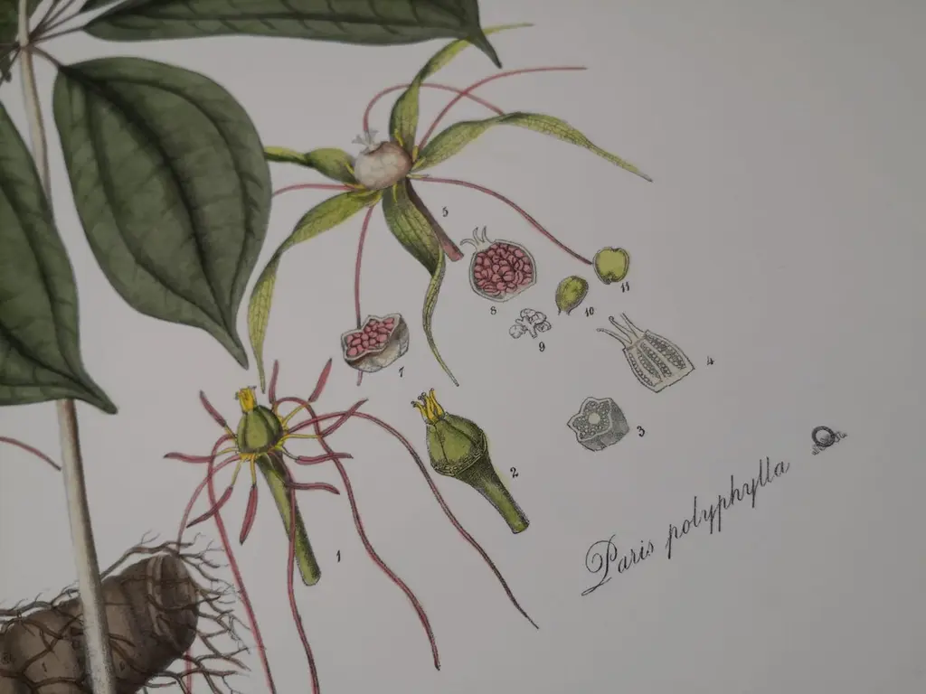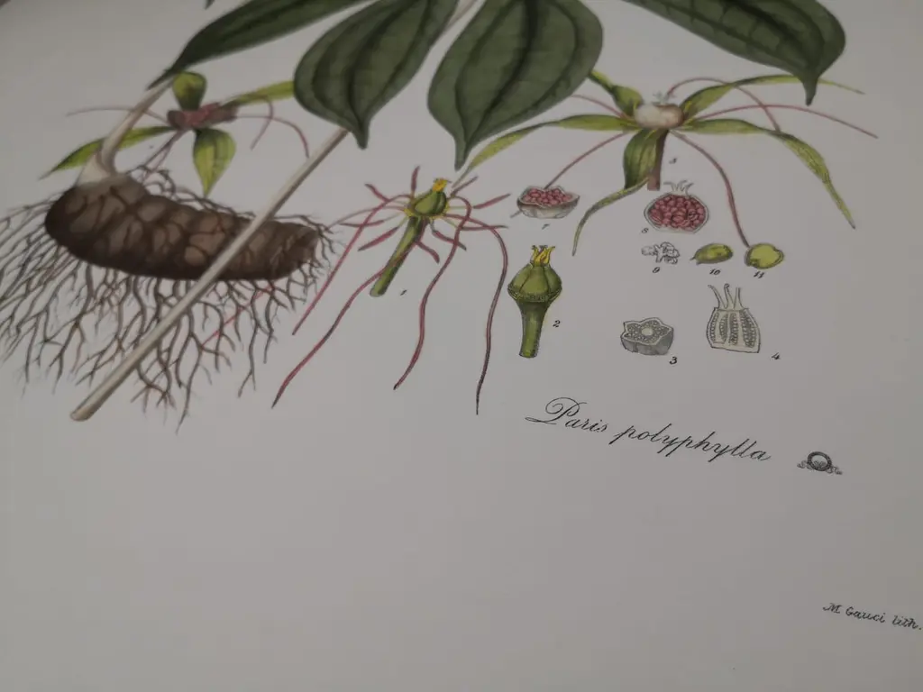 Italian Contemporary Hand Painted Botanical Print Representing Paris Polyphylla