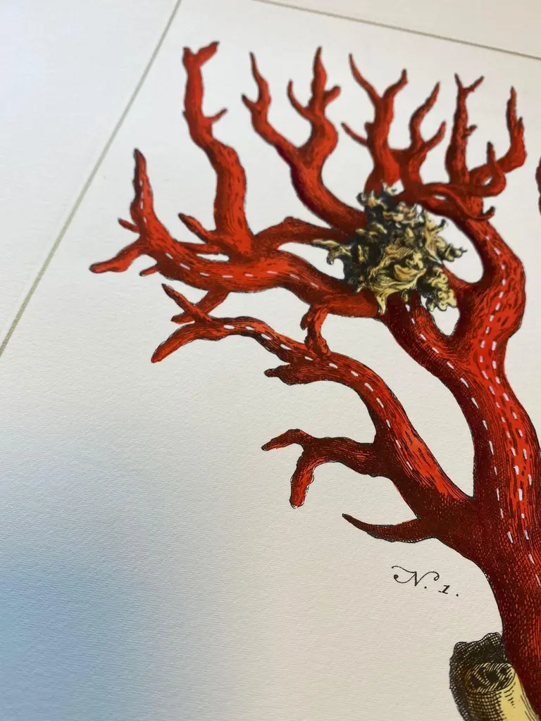 Italian Contemporary Hand Painted Print Albertus Seba "Corallium Rubrum", 1 Of 5