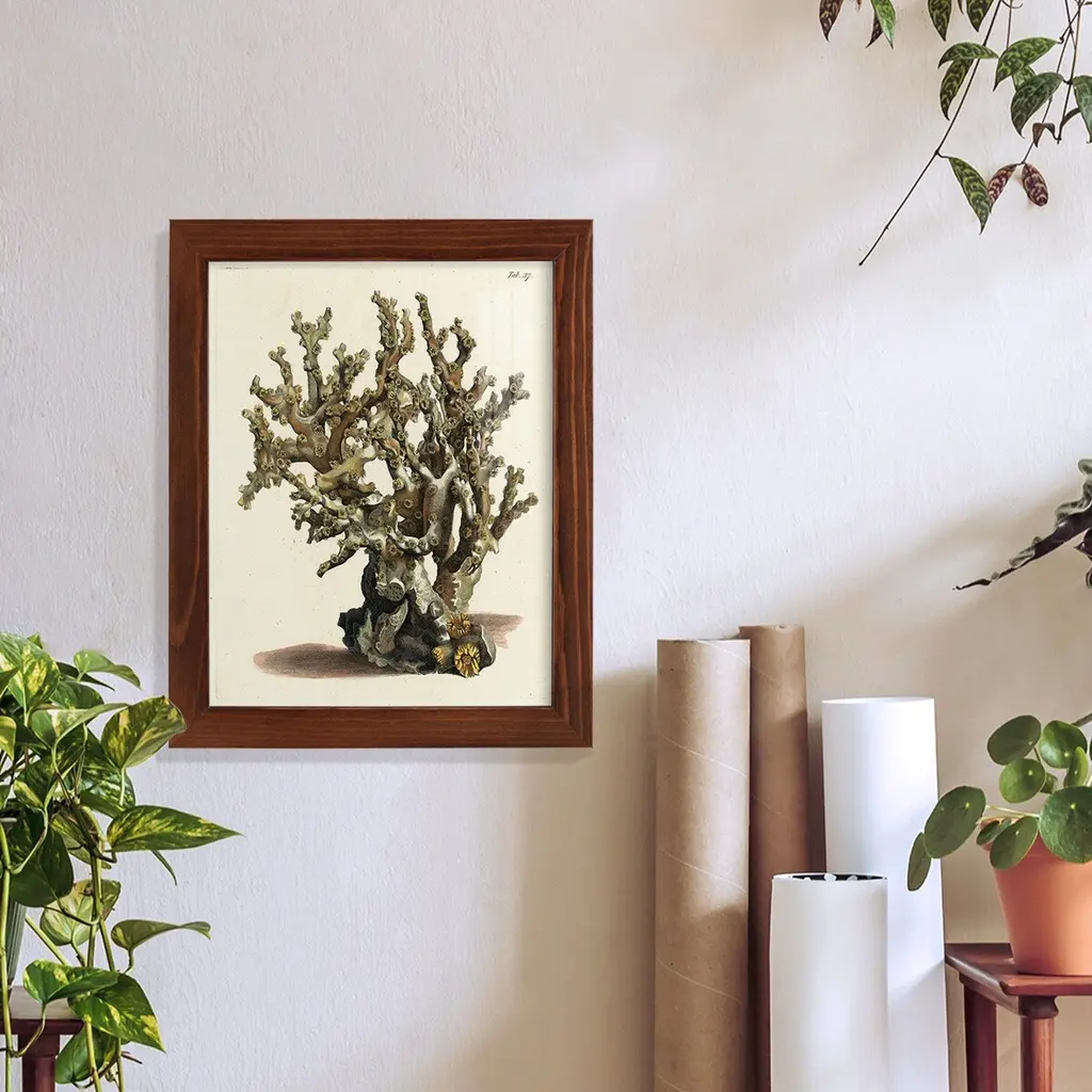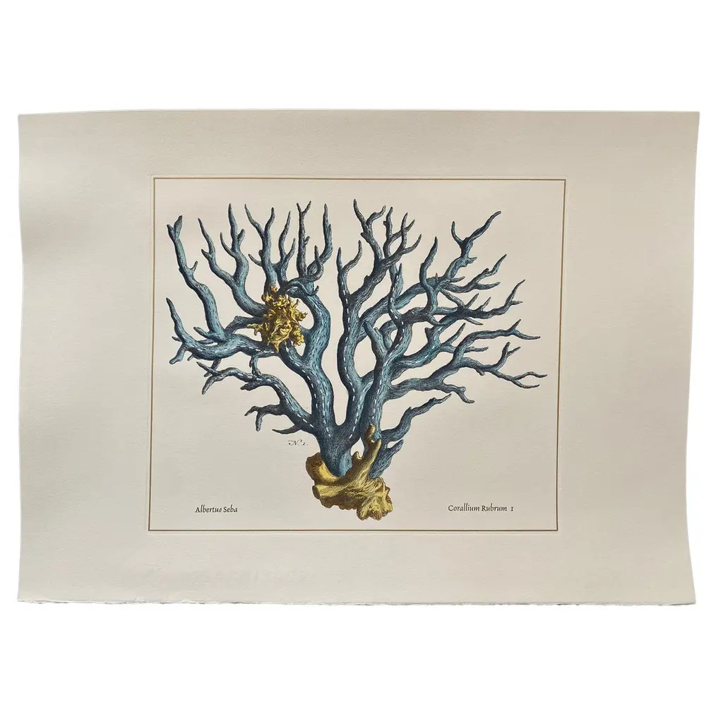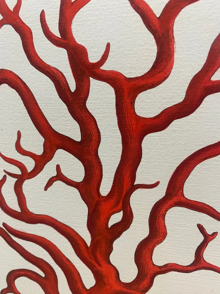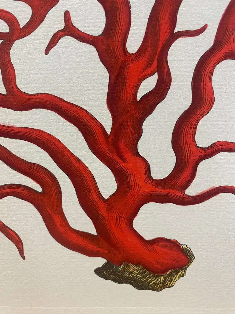 Elegant hand-watercolored print representing Corallium Rubrum in red nuance, Image reproduced from the famous illustrations by Albertus Seba' Cabinet of Natural Curiosities.These prints are available in 3 different representations and 2 colors, red and turquoise, to create a bright and joyful composition.Paper dimension 60 x 44 cmSlab rebate dimension 31 x 25.5 cm(cod. 538)Albertus Seba (May 12, 1665, Etzel near Friedeburg – May 2, 1736, Amsterdam) was a Dutch pharmacist, zoologist, and collector.He accumulated one of the largest cabinets of curiosities in the Netherlands during his time. He sold one of his cabinets in 1717 to Peter the Great of Russia and his later collections were auctioned after his death. He published descriptions of his collections in a lavishly illustrated 4 volume Thesaurus.With an experience of over 40 years, Artecornici design creates high-quality handmade frames using precious woods and working various types of high-quality finishes, lacquers and ageing, offering a vast choice of models.Each print is an artisanal Florentine product, reproducing images of the European 18th and 19th centuries with the same printing techniques (engraving with a star press), the golden age of prints, which are then finished and watercolored exclusively by handThe richness of our work lies in the ability to make our customers' requests our own, creating products with personalized, unique, and precious creations, renewing our collections year after year.